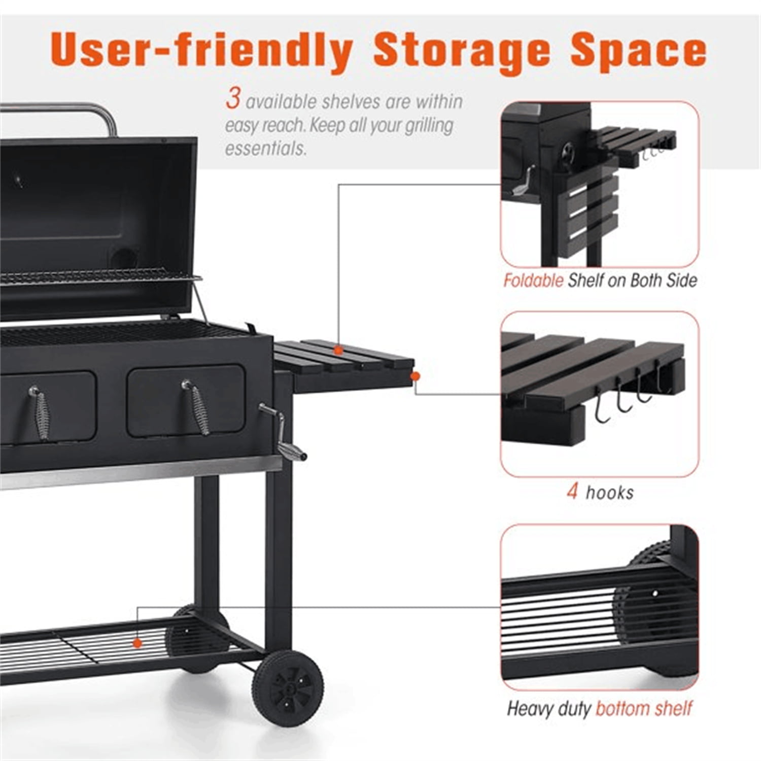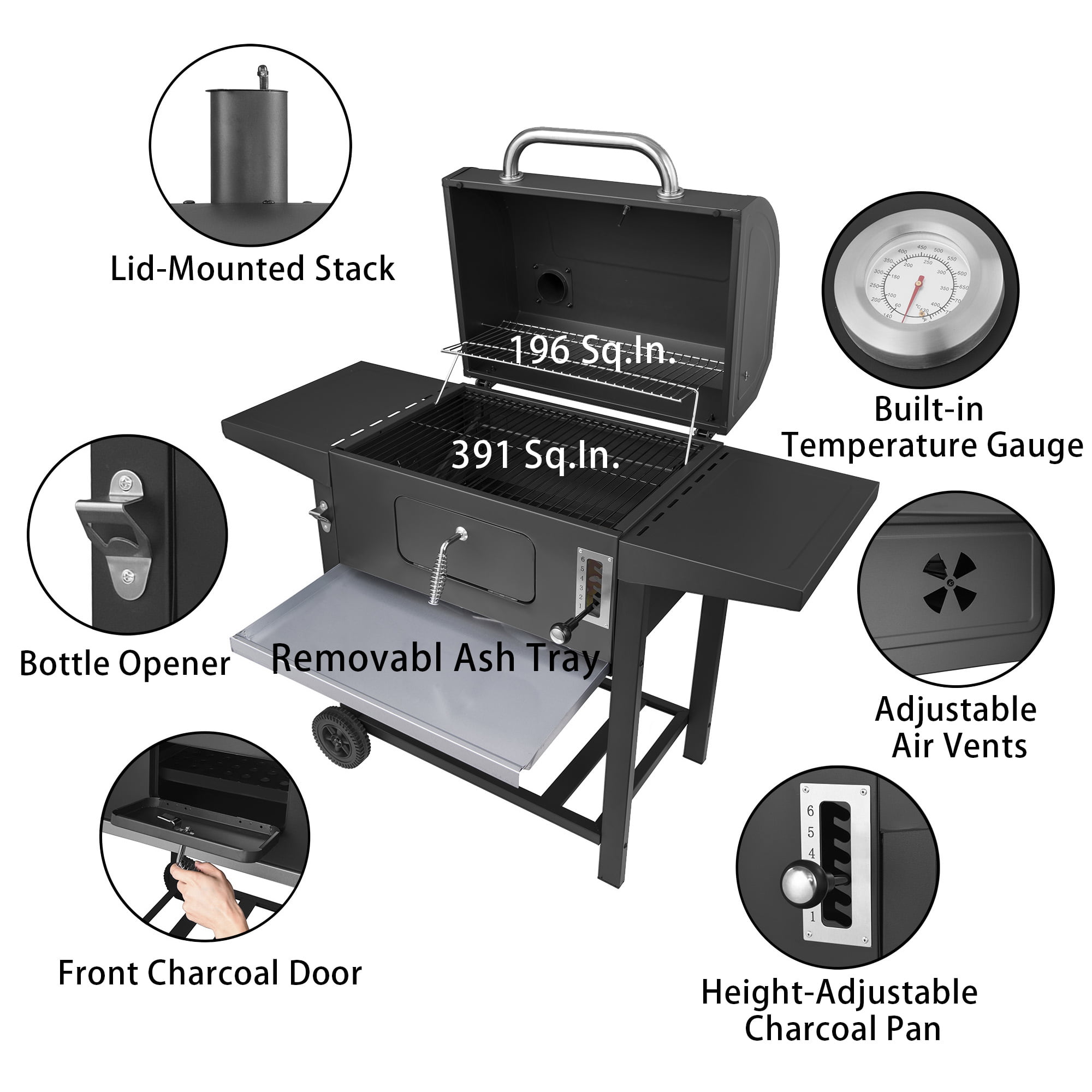 MF Studio 34” Charcoal Grill Extra Large Portable BBQ Grill. Black