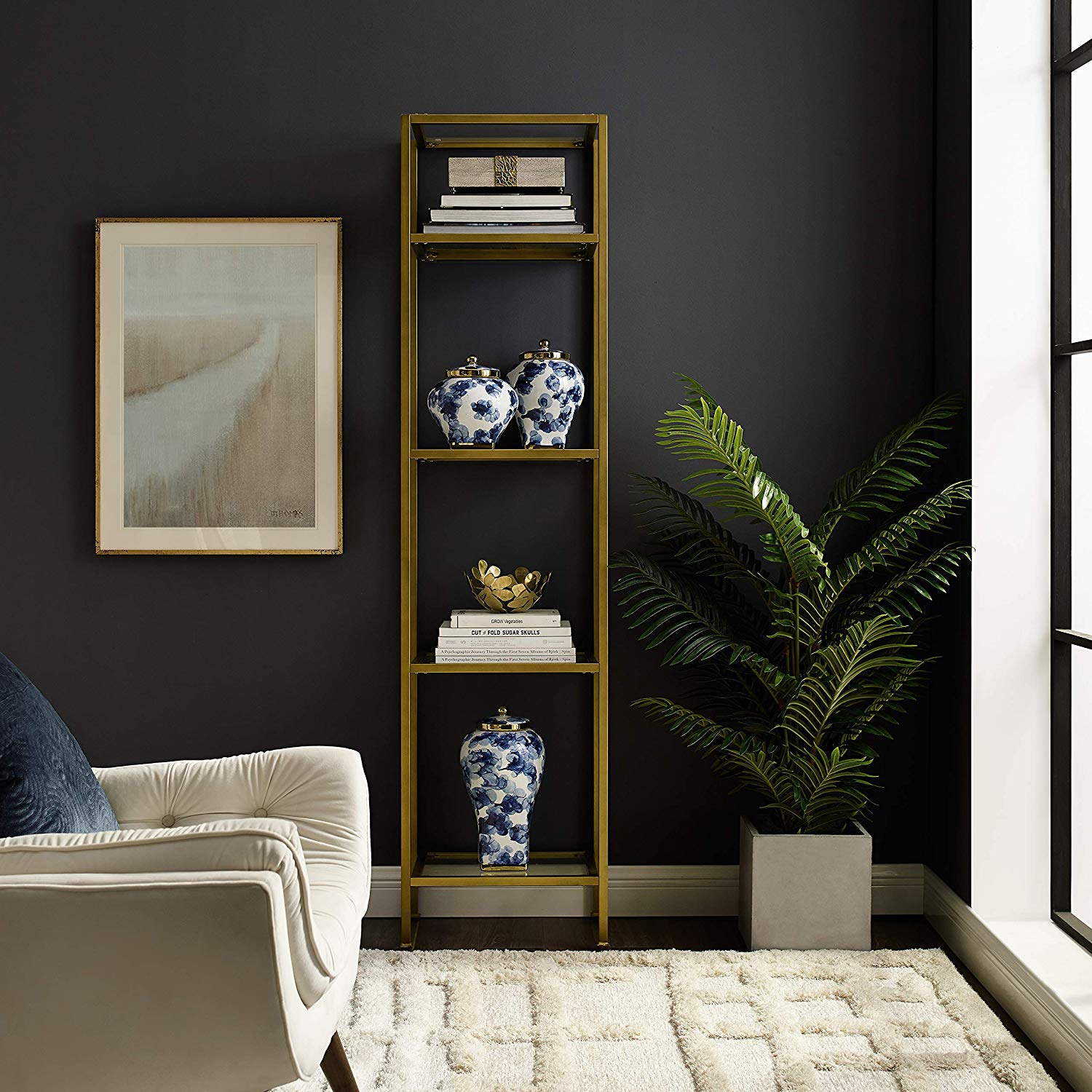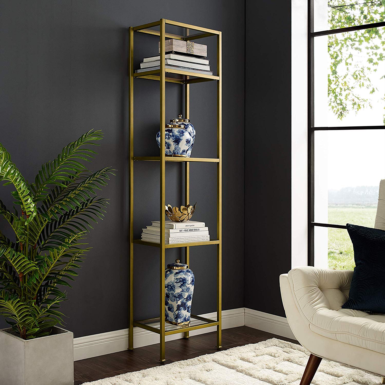 Crosley Furniture 12″W x 18″D x 73″H 4-Shelf Freestanding Shelves. Gold