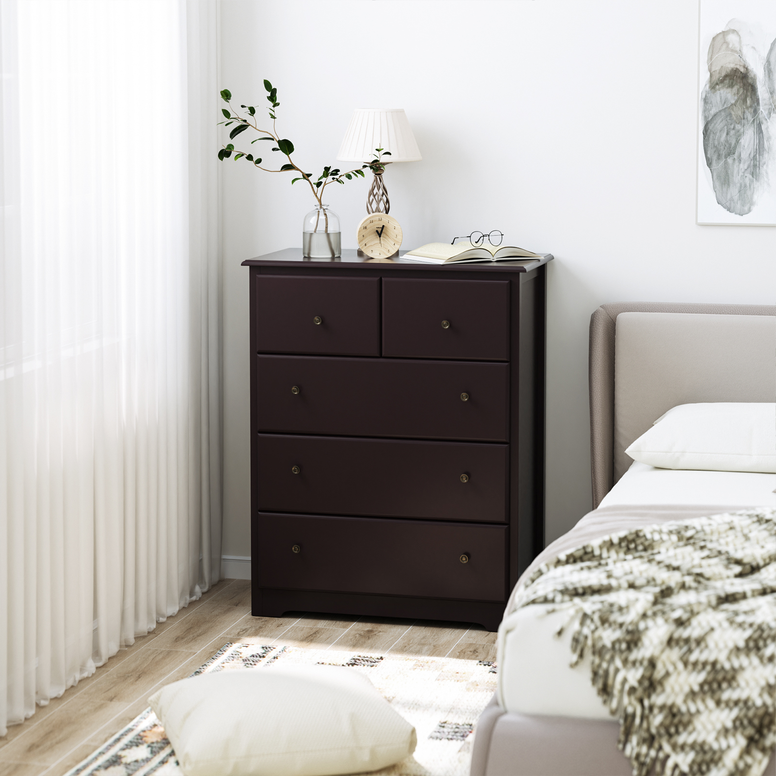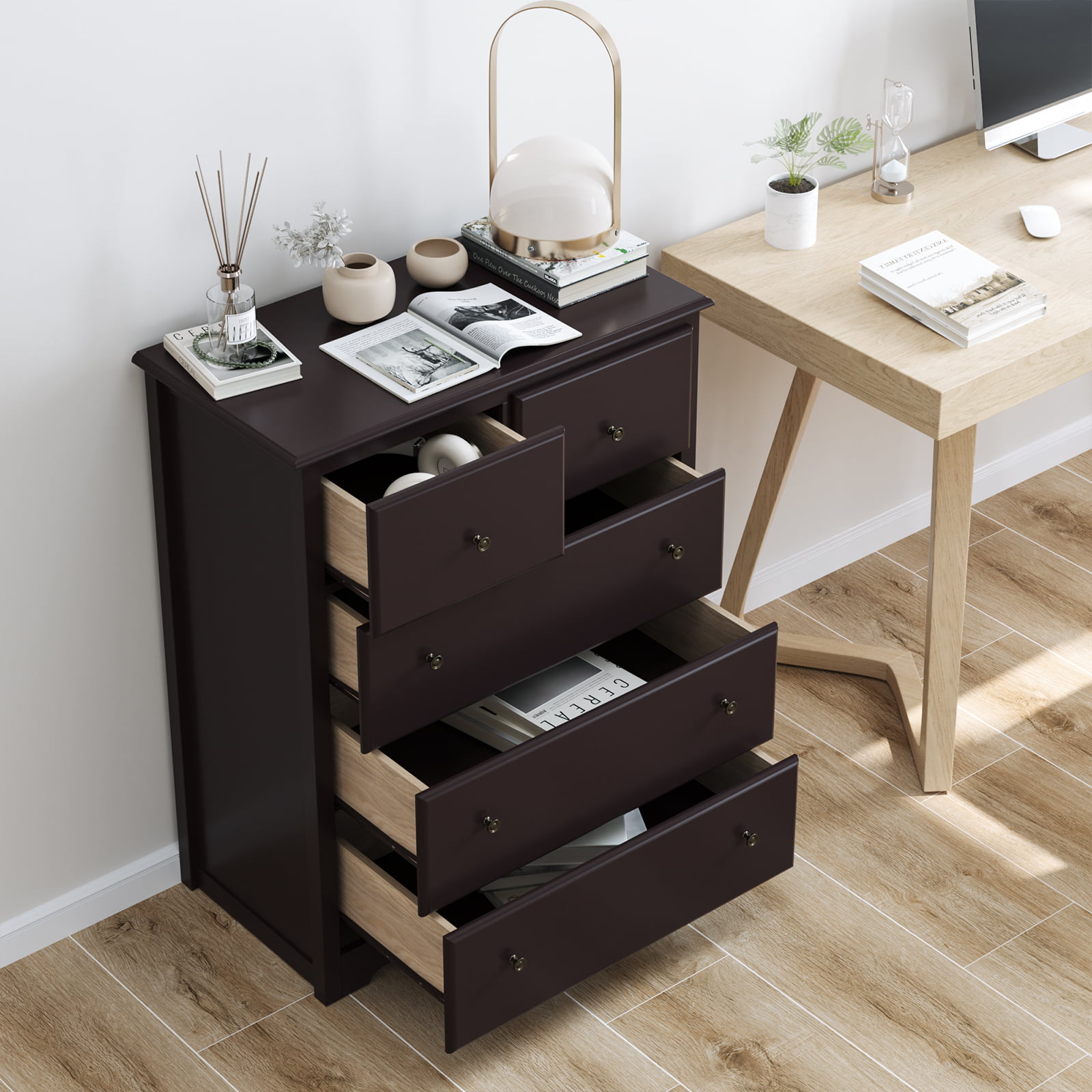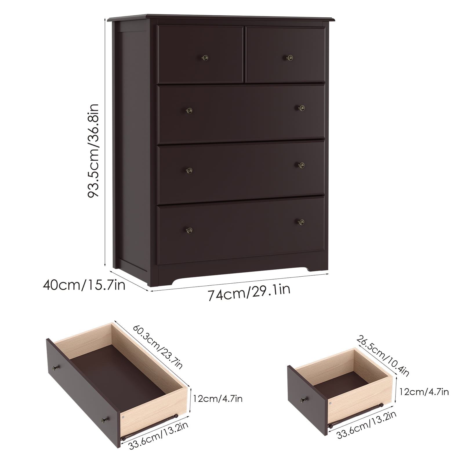 Homfa Retro Dressers for Bedroom. Modern Horizontal Dresser of 5 Drawers. 29” W Dresser Chest of Drawers for Kids