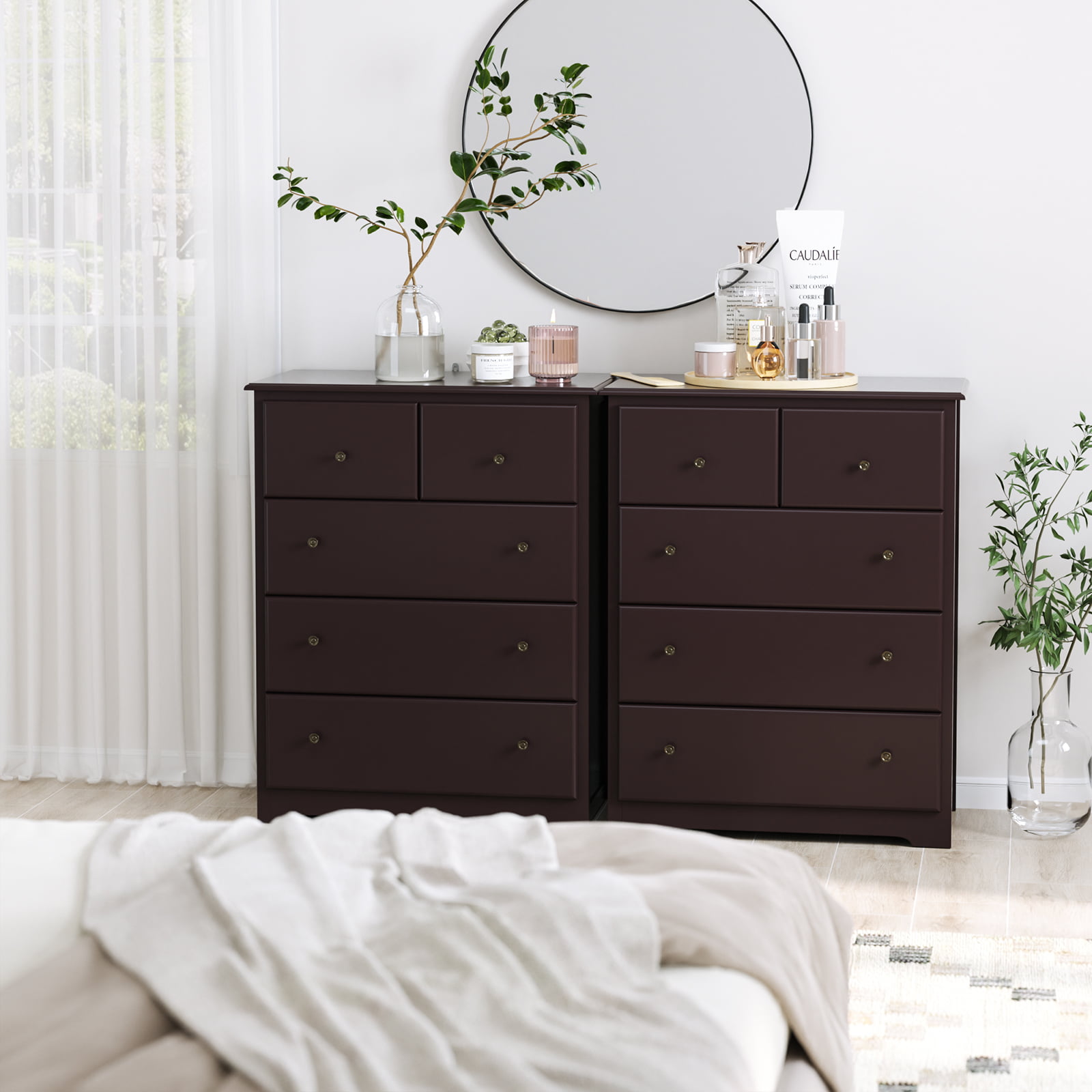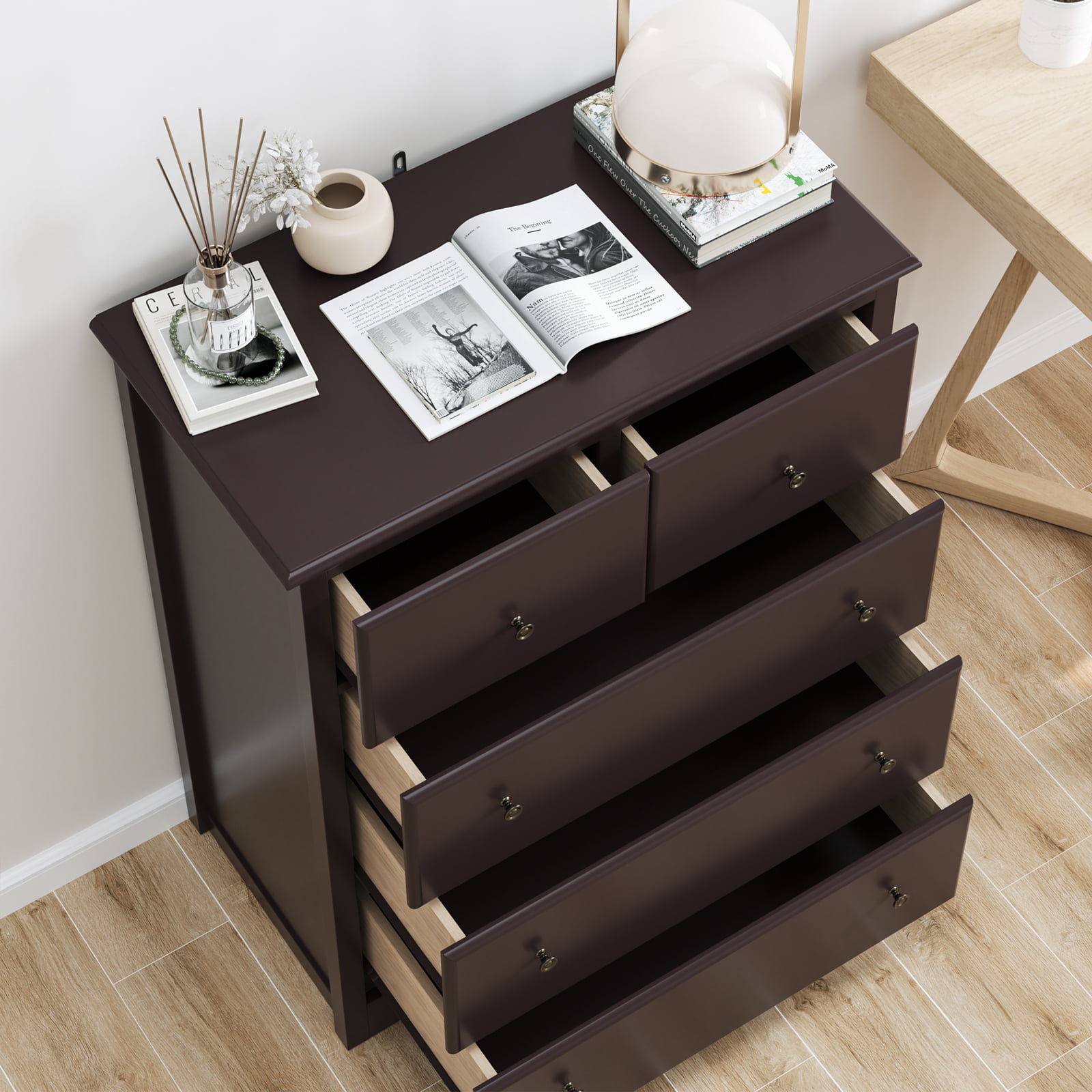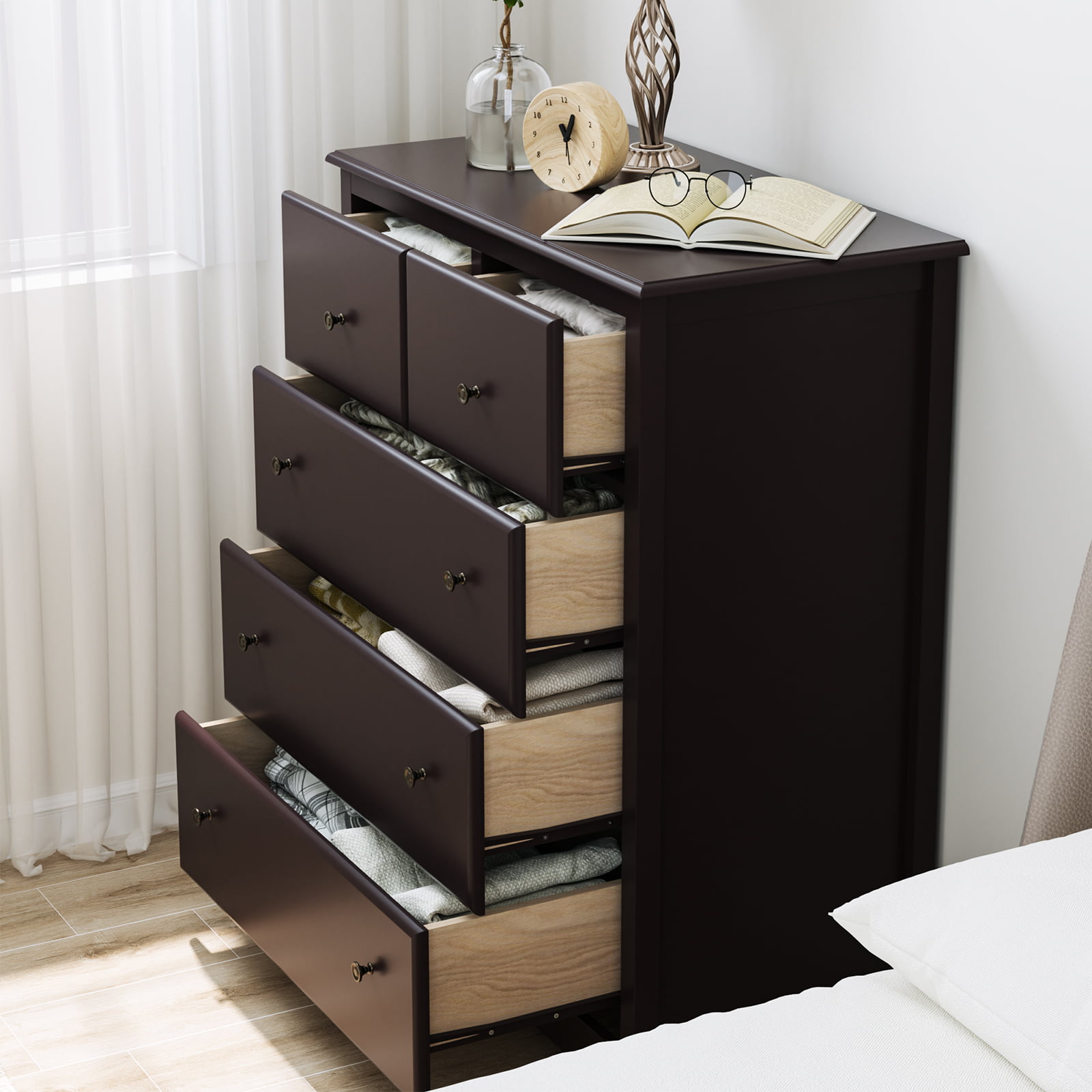 Homfa Retro Dressers for Bedroom. Modern Horizontal Dresser of 5 Drawers. 29” W Dresser Chest of Drawers for Kids