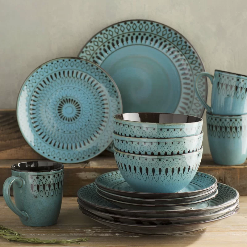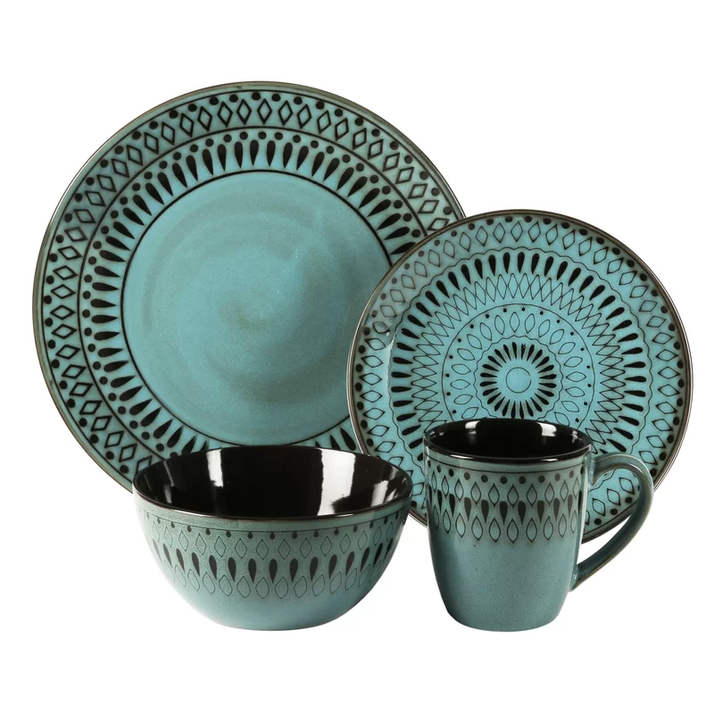 Red Barrel Studio® Weller Stoneware Dinnerware Set - Service for 4 - Blue