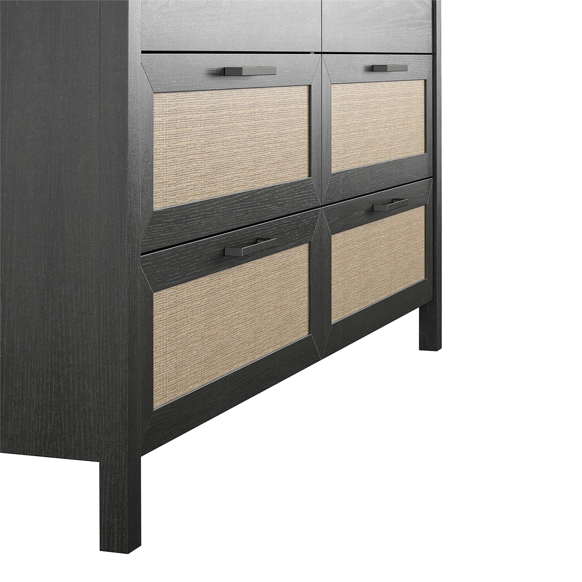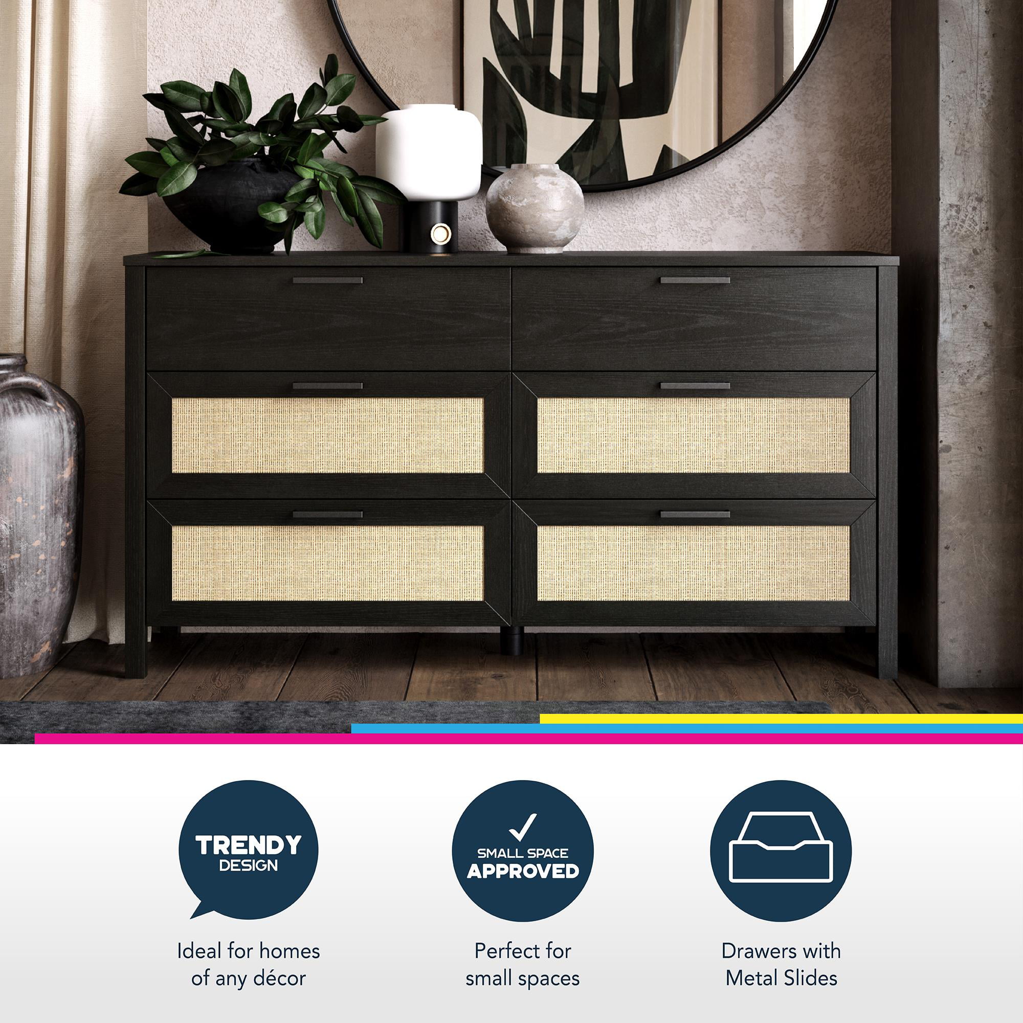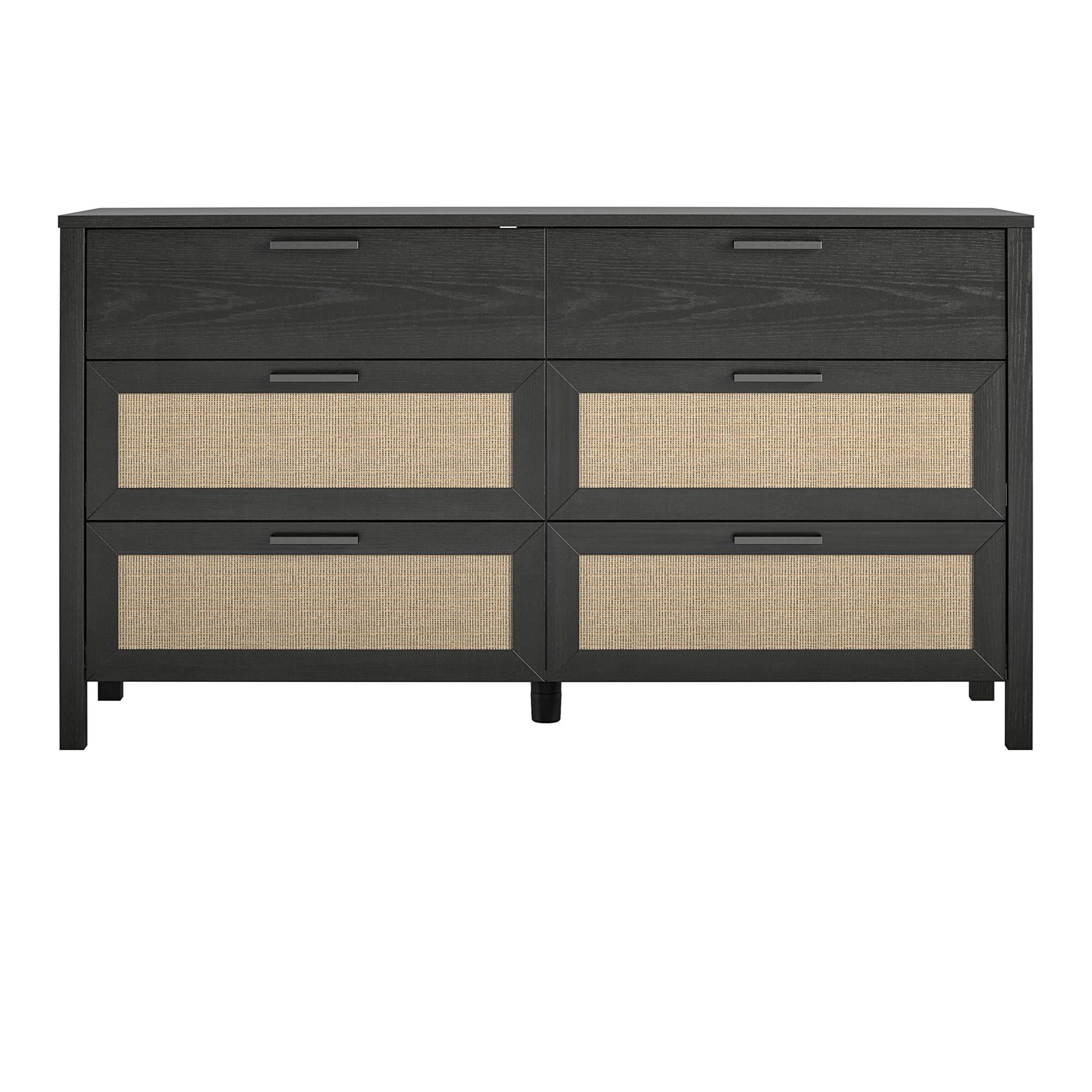 Queer Eye Wimberly 6 Drawer Dresser. Black Oak with Faux Rattan