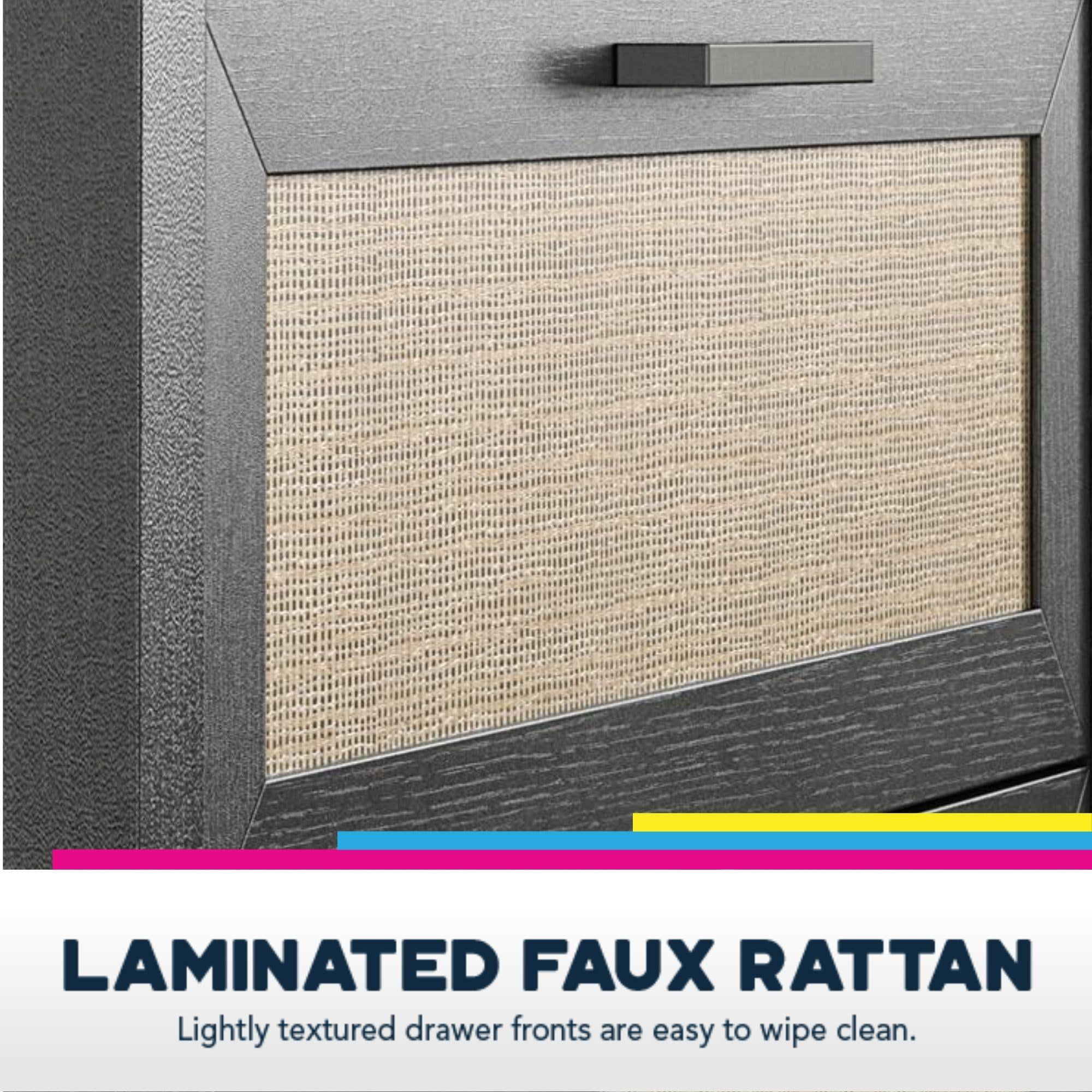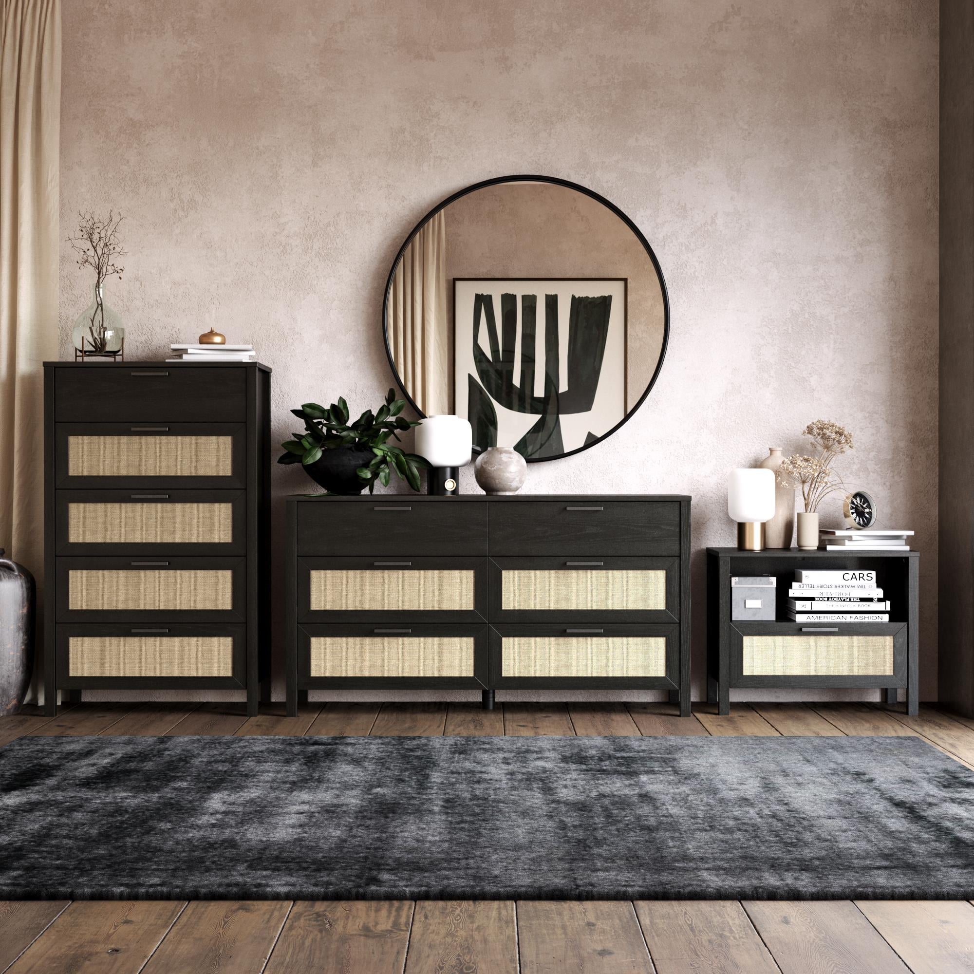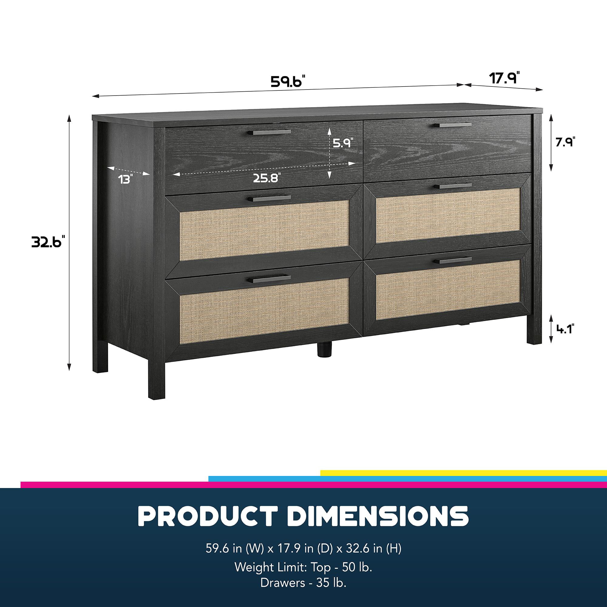 Queer Eye Wimberly 6 Drawer Dresser. Black Oak with Faux Rattan