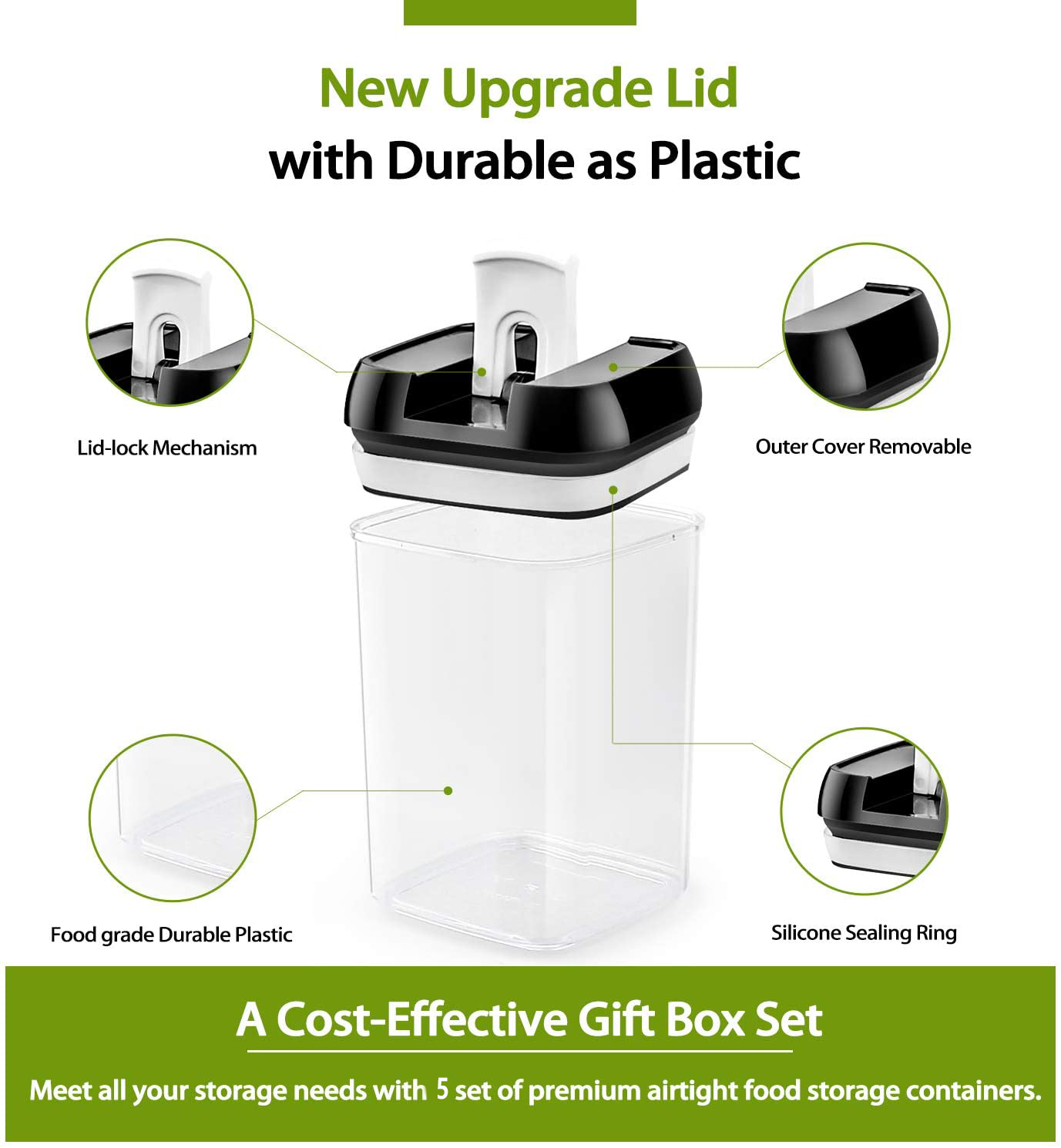 Suproot Kitchen Food Storage Pantry Organization Containers - Set of 5. BPA Free Plastic Airtight Kitchen Organization and Storage- Includes Labels and Marker