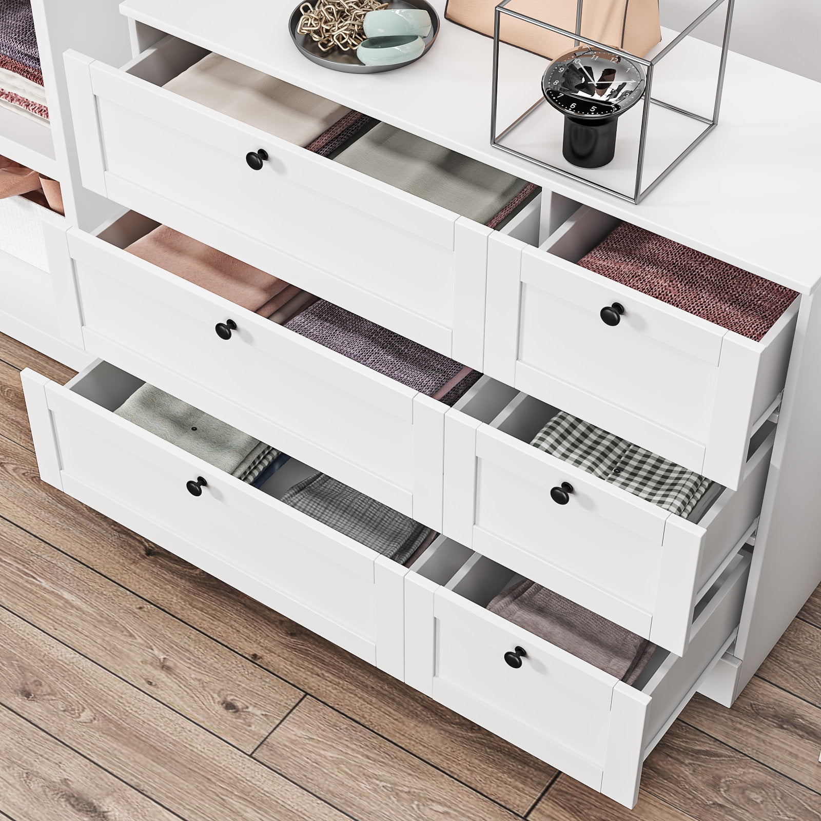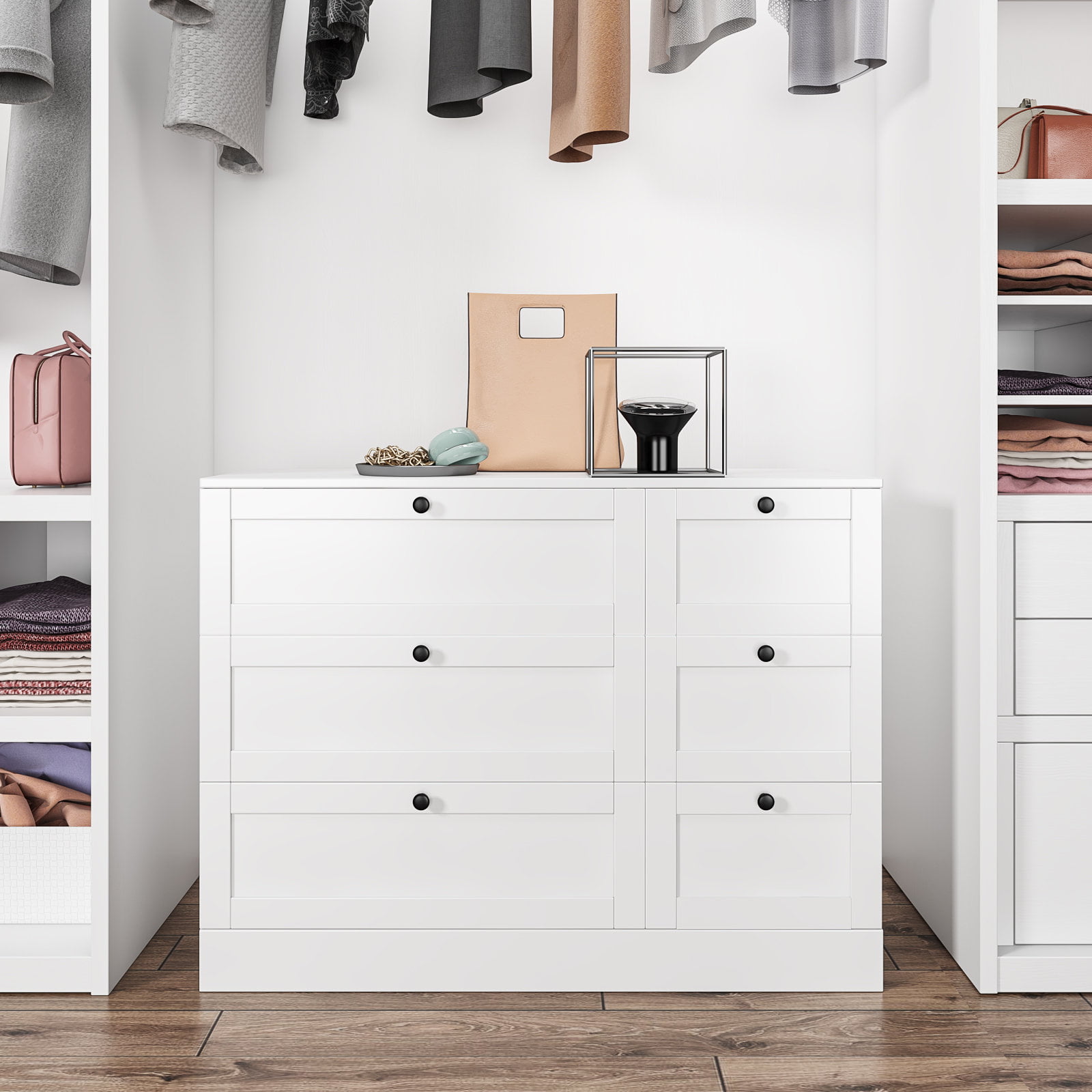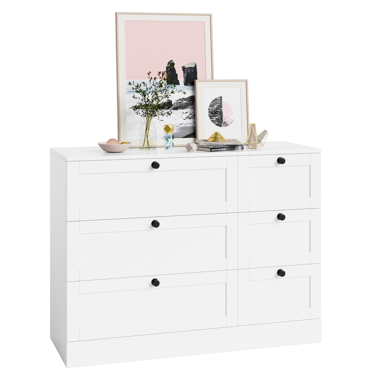 Homfa Storage Cabinet. 6 Drawer Dresser with Wide Space. Modern Closet Storage Drawers. Wooden Sideboard for Living Room. Bedroom. Dining Room. White