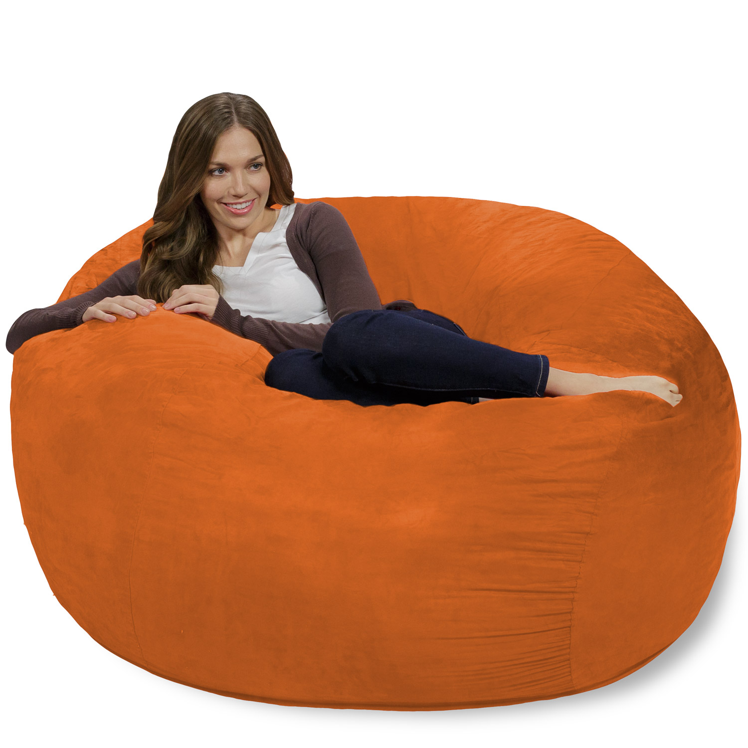 Chill Sack Bean Bag Chair. Memory Foam Lounger with Microsuede Cover. Kids. Adults. 4 ft. Orange