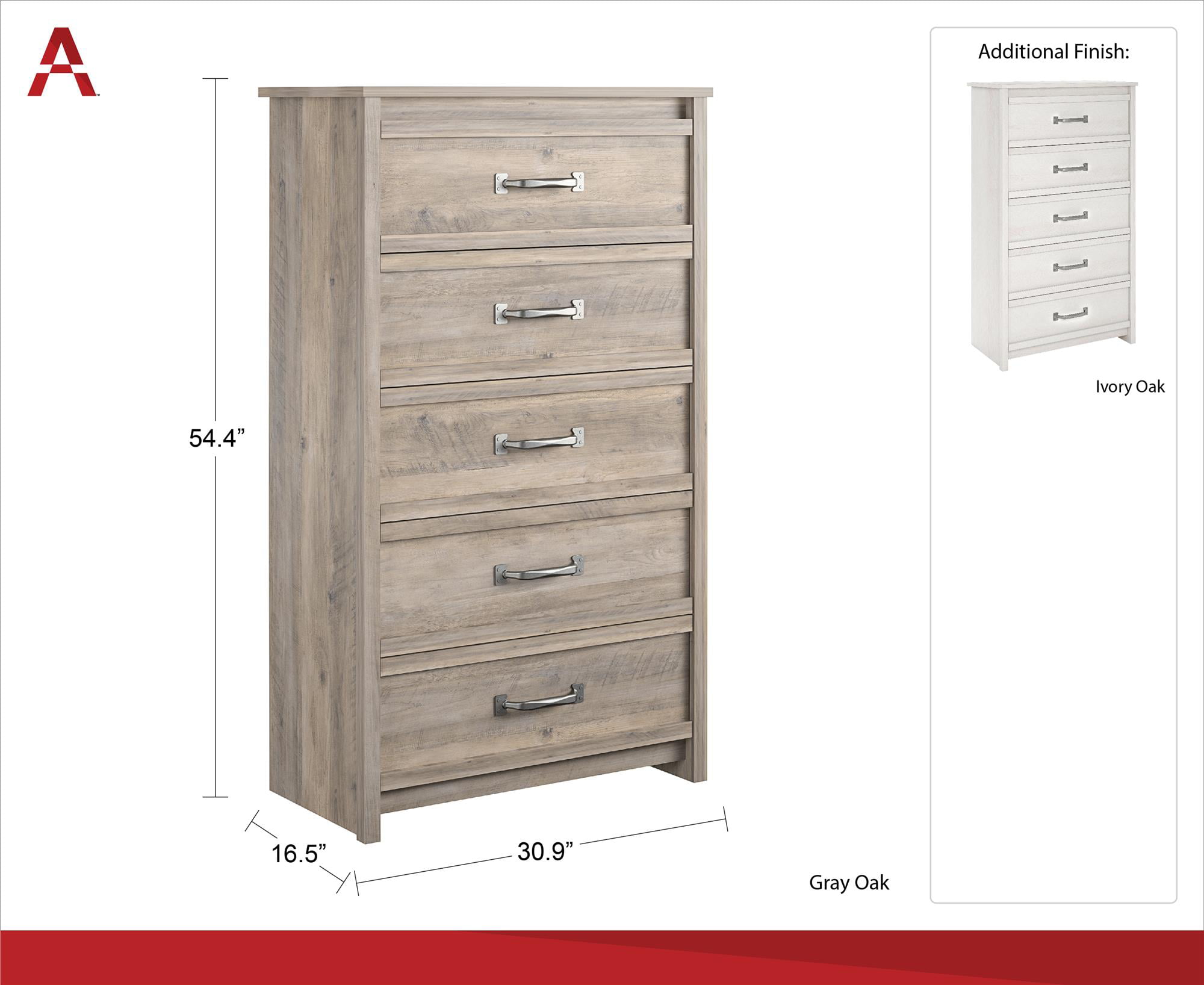 Better Homes & Gardens Rustic Ranch 5 Drawer Dresser. Gray Oak