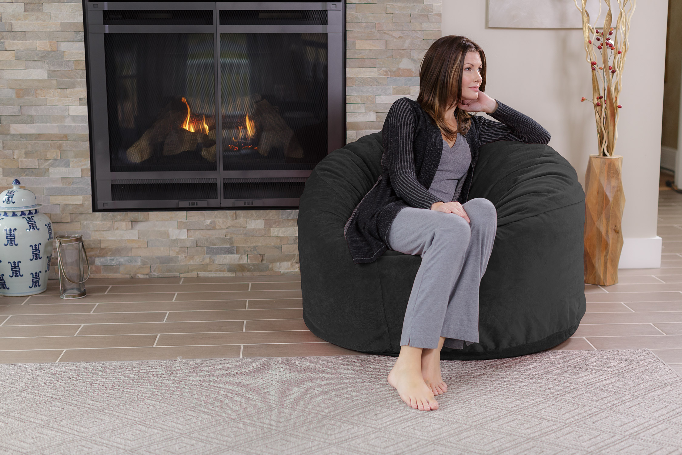 Chill Sack Bean Bag Chair. Memory Foam Lounger with Microsuede Cover. Kids. Adults. 4 ft. Dark Grey Pebble
