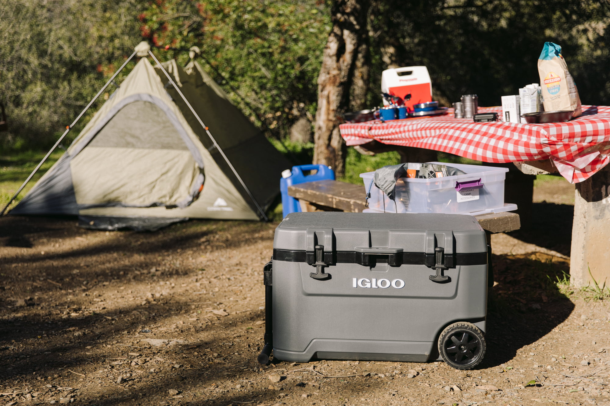 Igloo Overland 72 Quart Ice Chest Cooler with Wheels. Gray