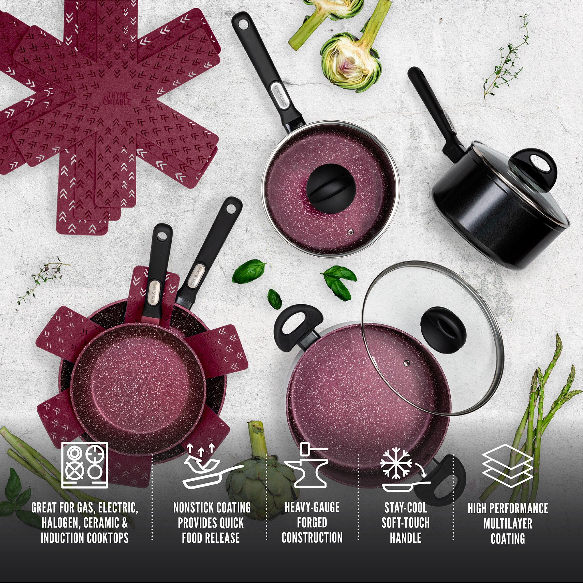 Thyme & Table Non-Stick 12 Piece Cookware Set. Scarlet Red