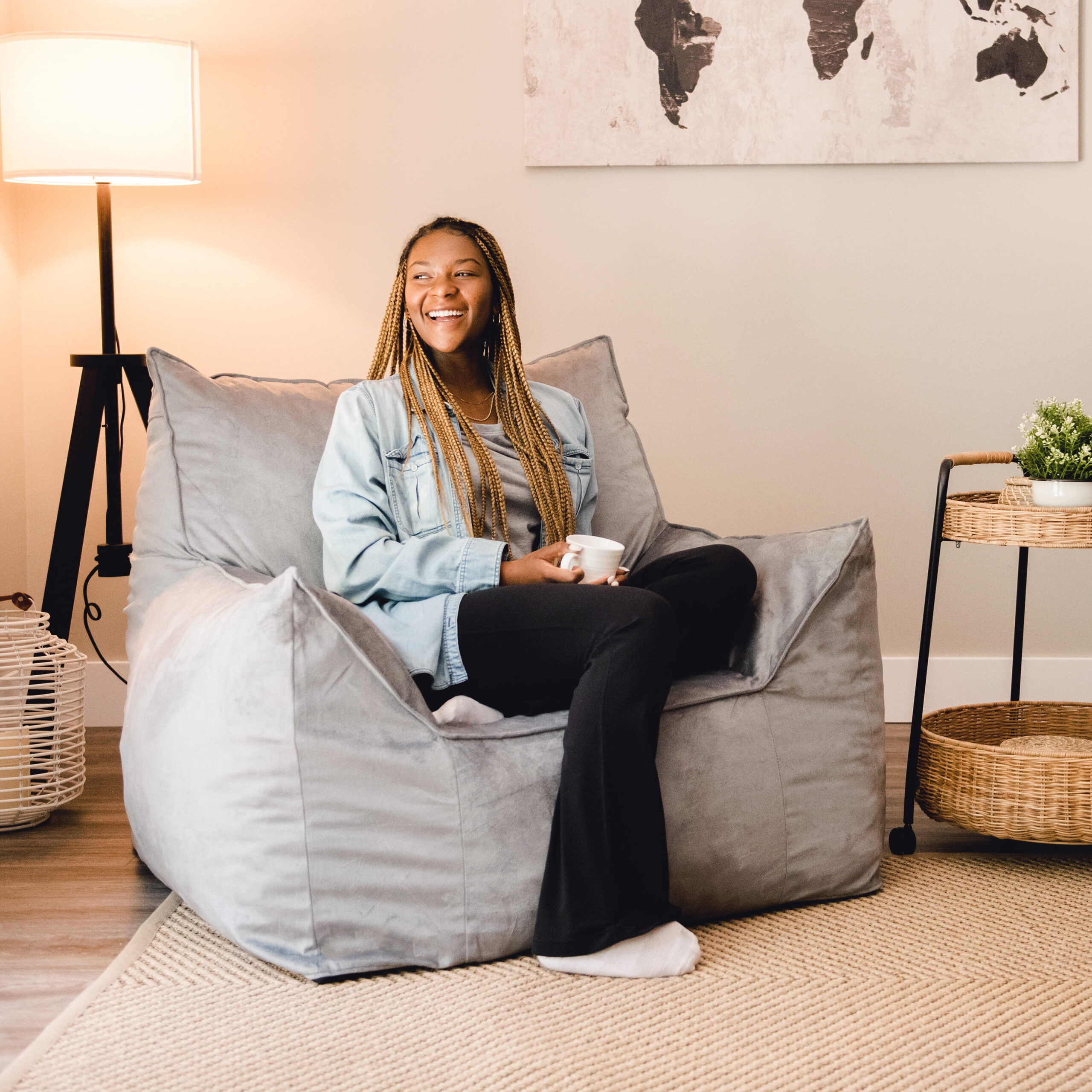 Big Joe Imperial Lounger Bean Bag Chair. Plush 4ft. Gray