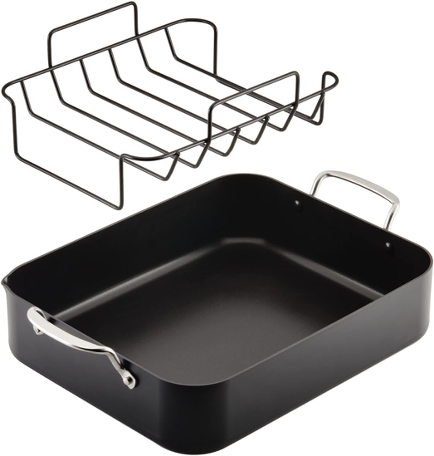 KitchenAid Hard Anodized Roasting Pan/Roaster with Removable Rack. 13 Inch x 15.75 Inch. Matte Black
