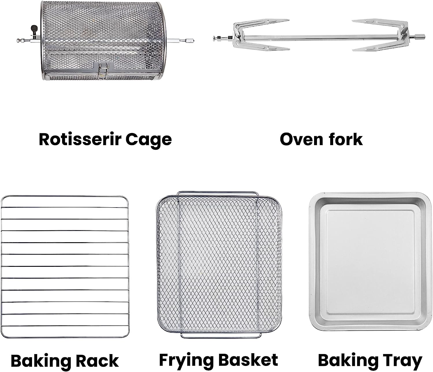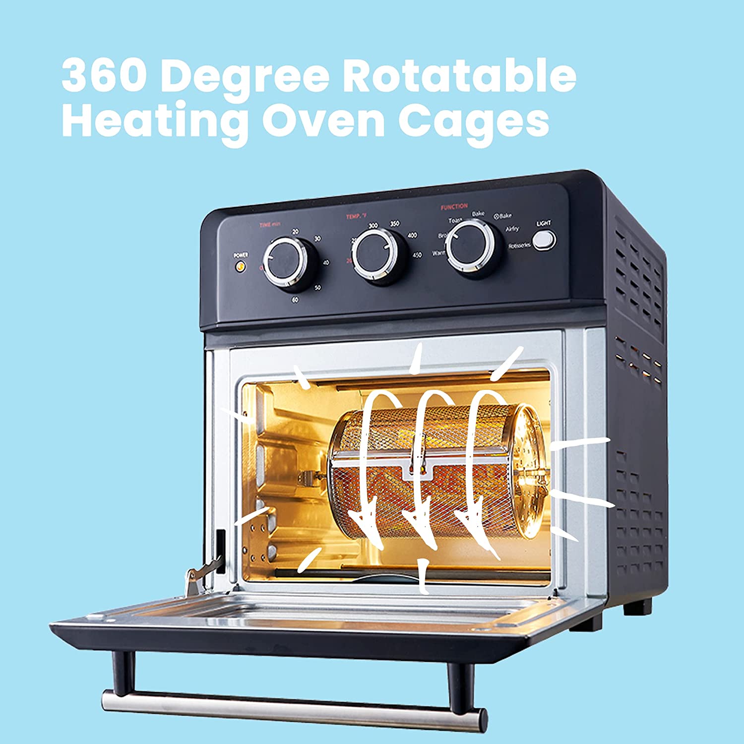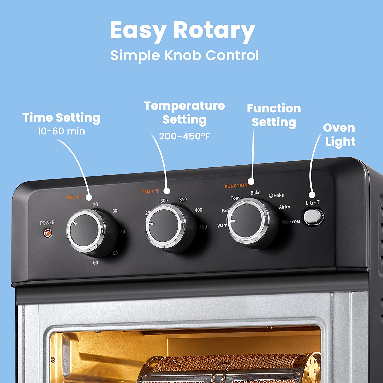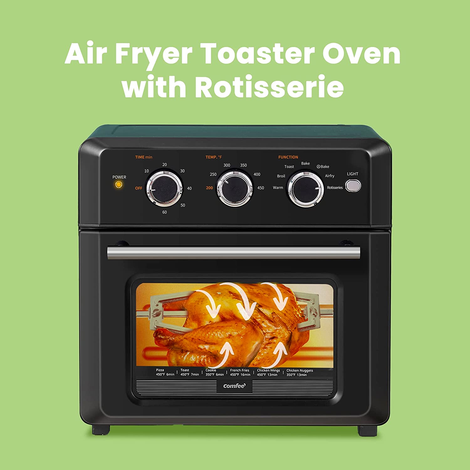COMFEE- Retro Air Fry Toaster Oven. 7-in-1. 1500W. 19QT Capacity. 6 Slice. Air Fry. Rotisseries. Warm. Broil. Toast. Bake. Convection Bake. Black. Perfect for Countertop
