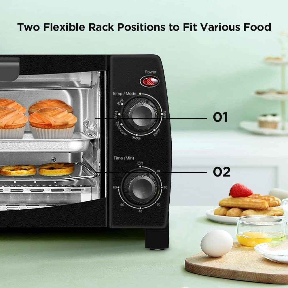 COMFEE- 4 Slice Small Toaster Oven Countertop. Retro Compact Design. Multi-Function with 30-Minute Timer. Bake. Broil. Toast. 1000 Watts. 2-Rack Capacity. Black (CFO-BB101)