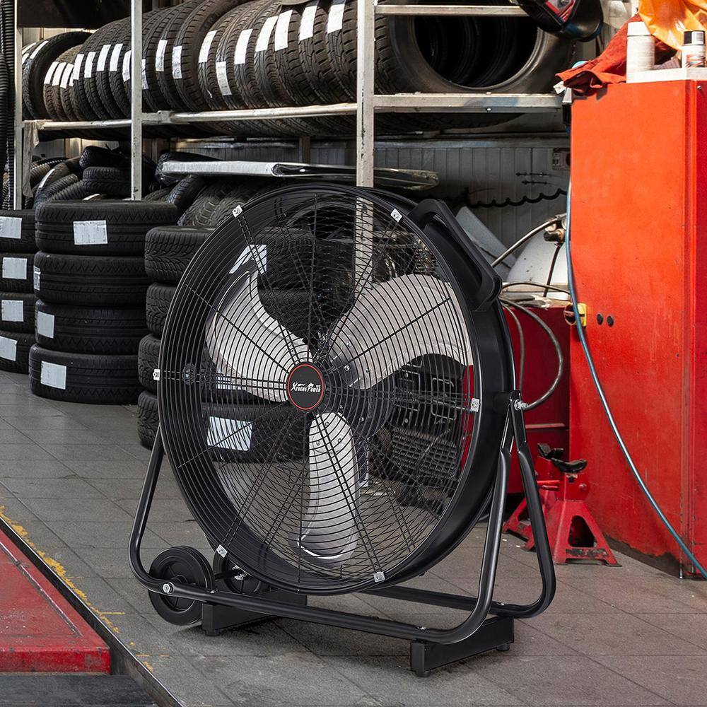 XtremepowerUS 92024-H1 24 in. High Velocity 3-Adjustable Speed Commercial Rolling Floor Drum Fan in Black