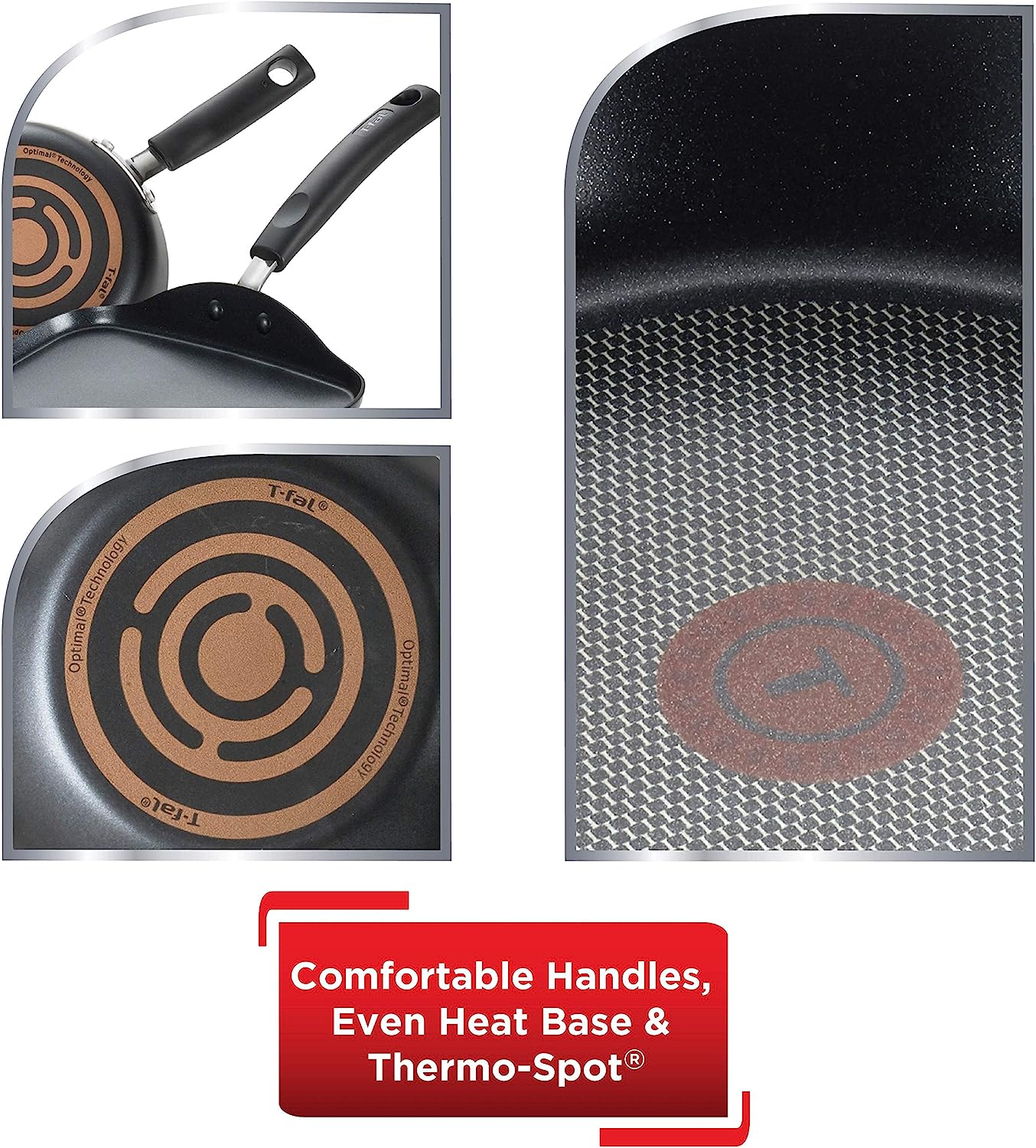 T-fal Signature Nonstick Cookware Set 12 Piece Pots and Pans. Dishwasher Safe Black