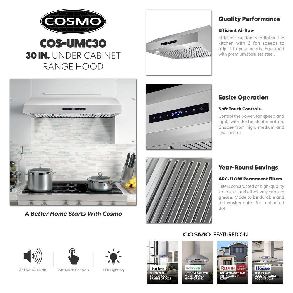 Cosmo UMC30 30 in. Ducted Under Cabinet Range Hood in Stainless Steel with Touch Display and Permanent Filters