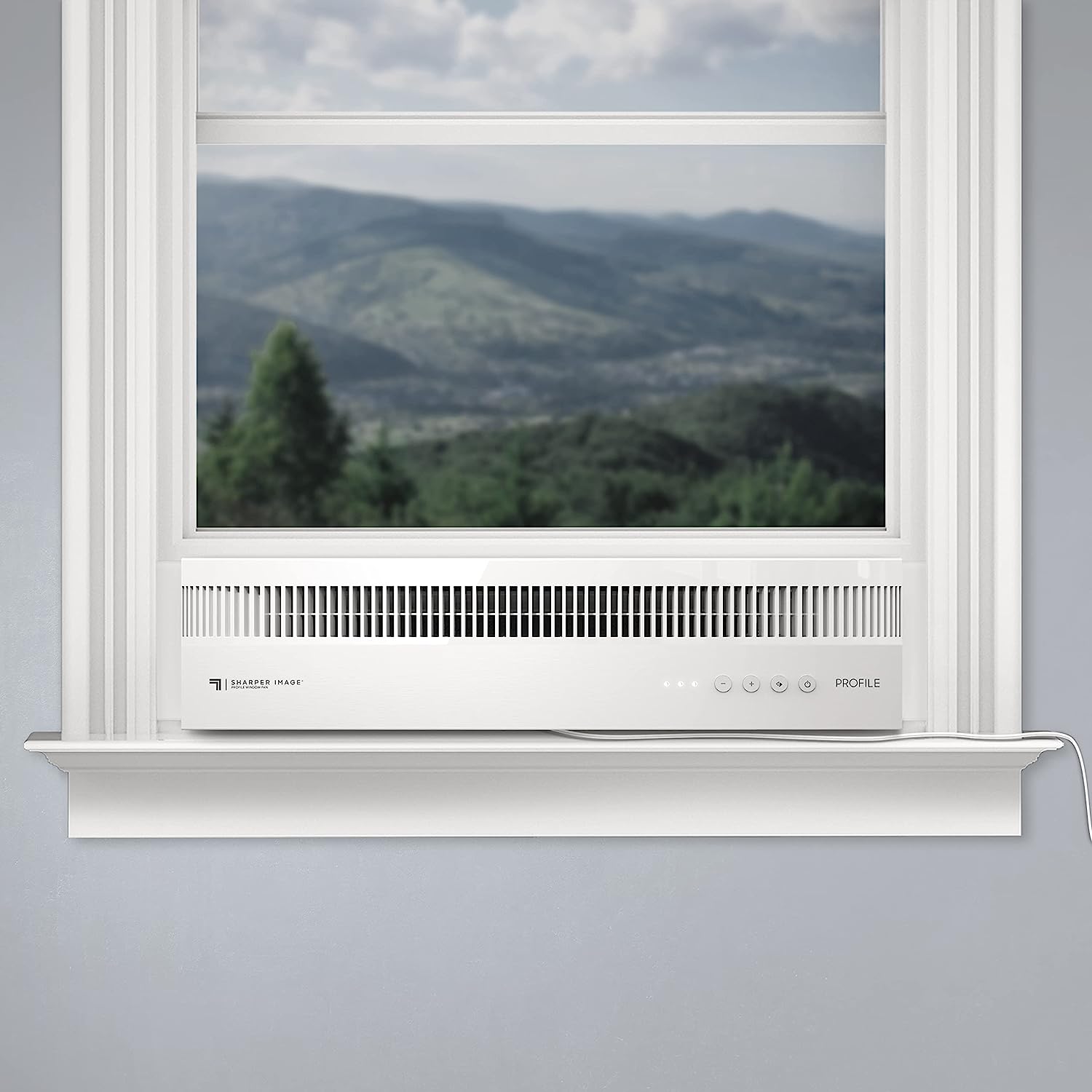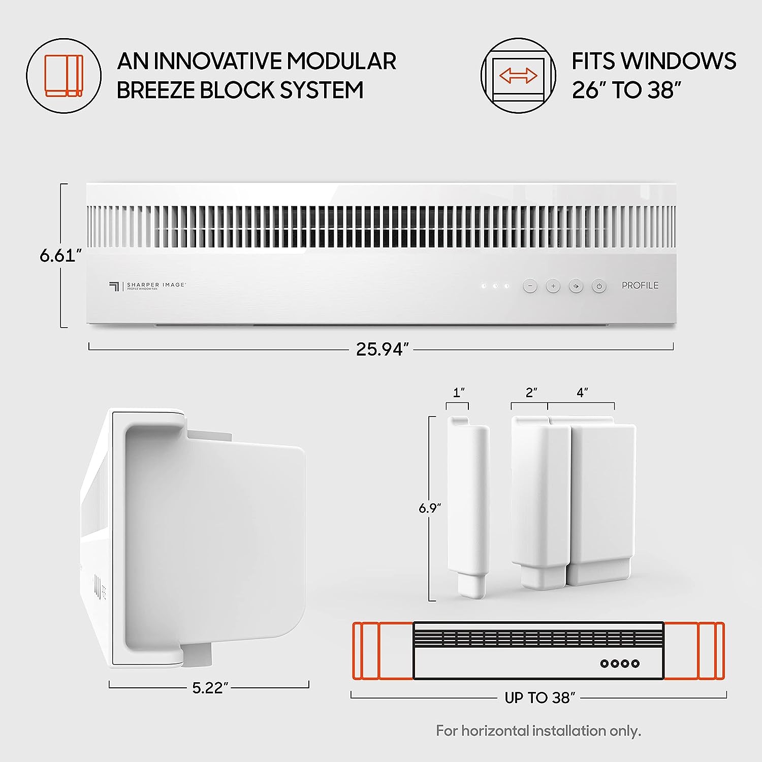 SHARPER IMAGE Window Fan with 3 Speeds. Reversible Exhaust Mode. Weather Resistant. PROFILE. White