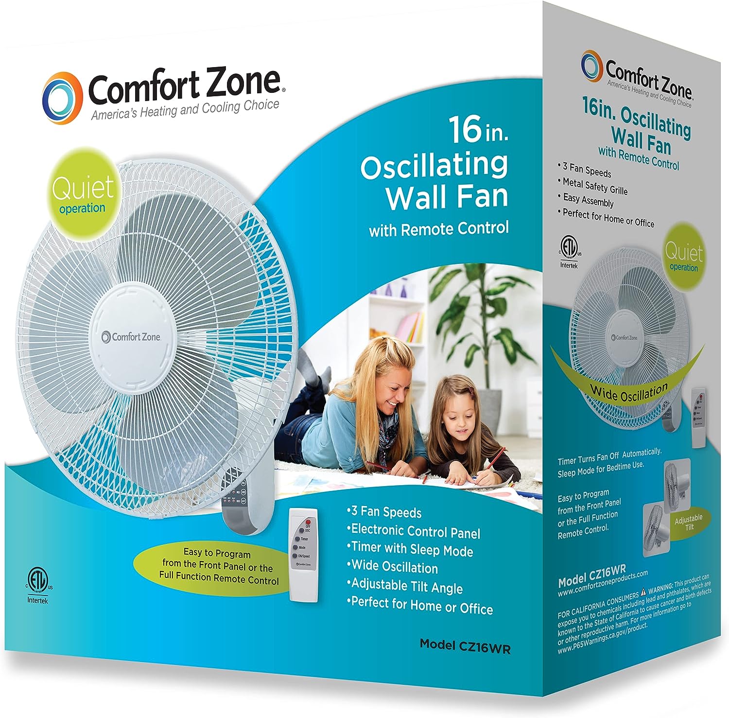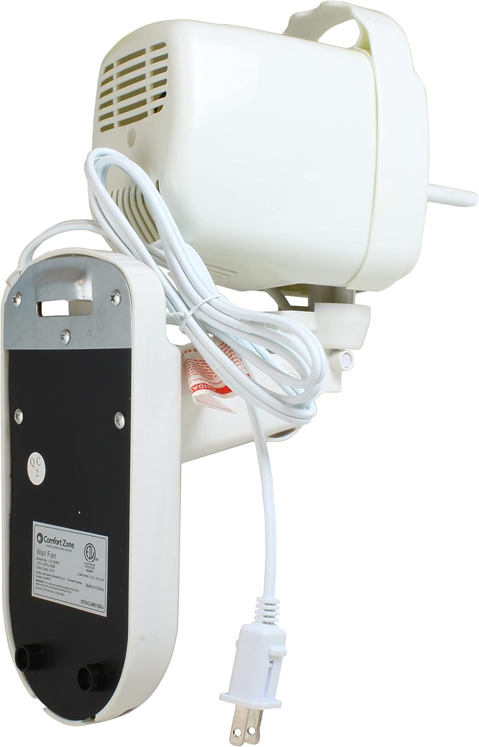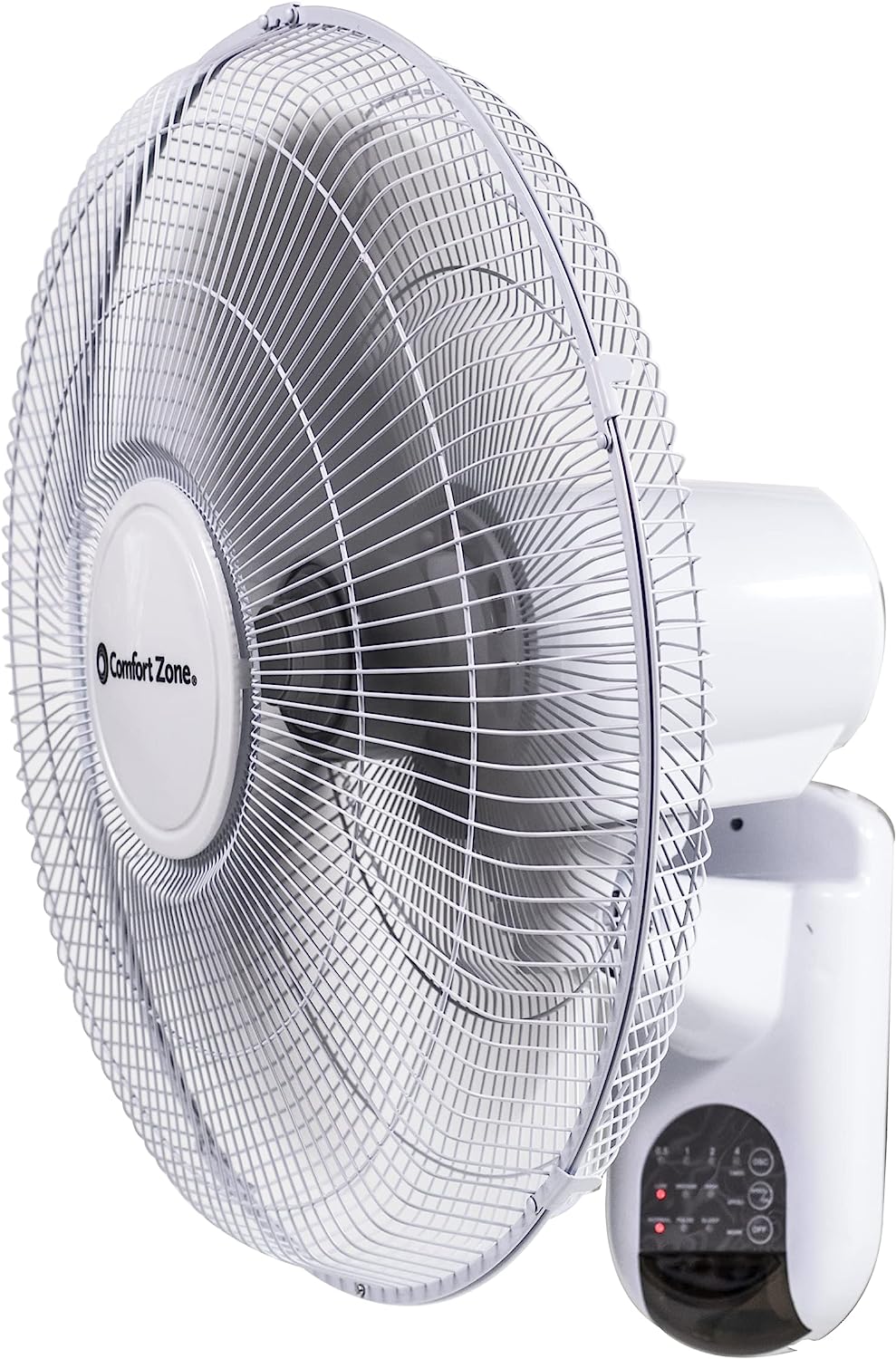 Comfort Zone CZ16WR 16″ Quiet 3-Speed Wall Mount Fan with Remote Control. Timer and Adjustable Tilt. White