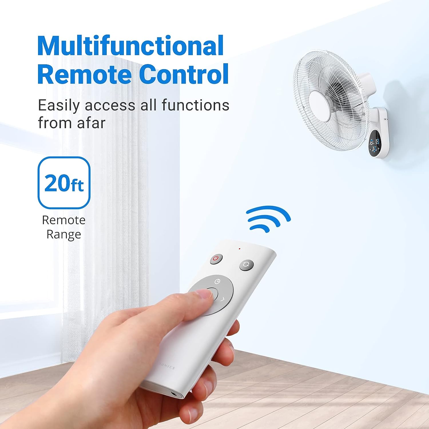 Mirdred Wall Mount Fan. 16 Inch 5 Blades 5 Speeds Wall Fan with Remote Control. 90 Degree 8 Hour Timer Oscillating Fan for Bedroom Home Kitchen Gym Yoga Pilates Studio Glass Sunshine Room. White