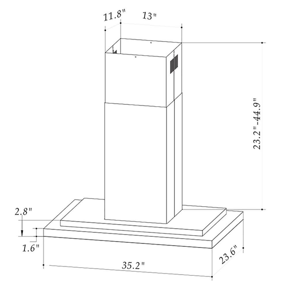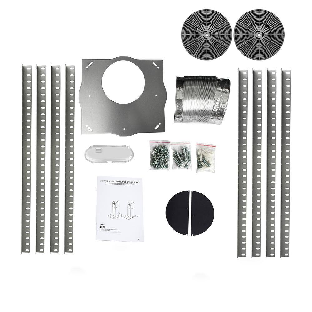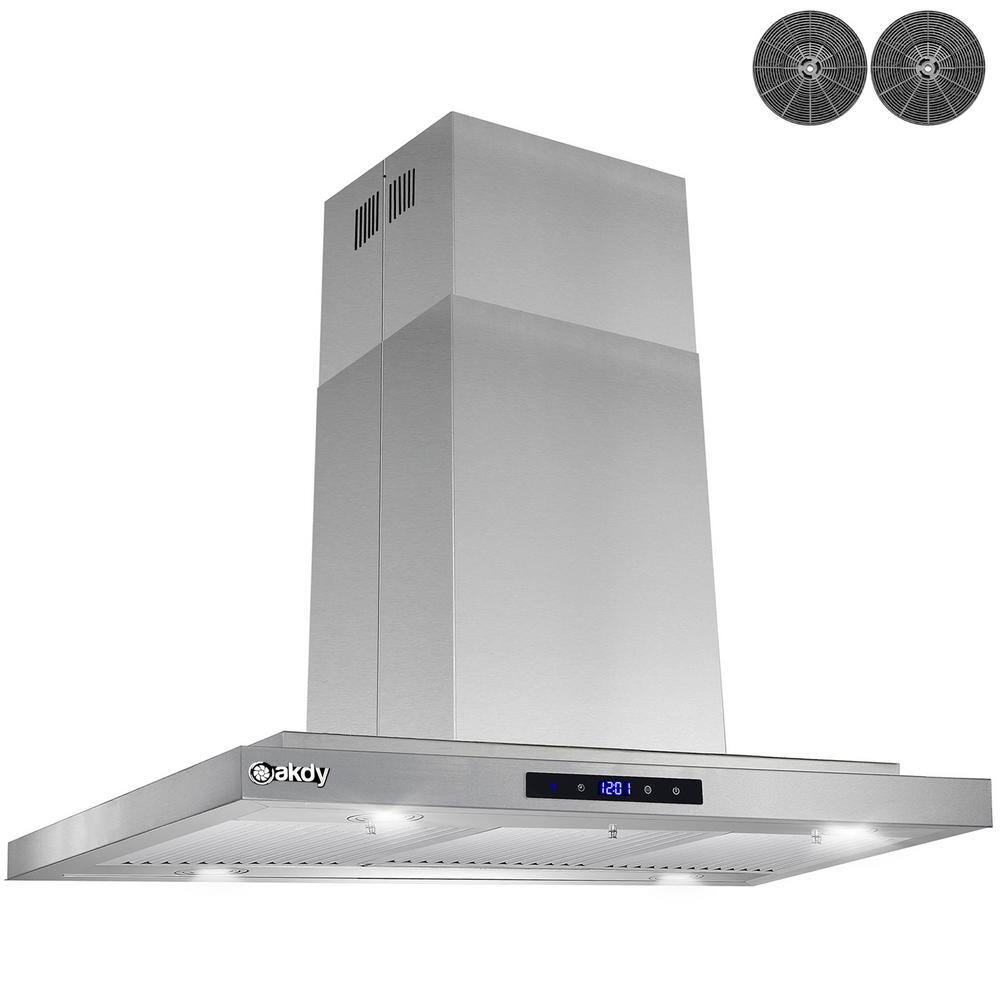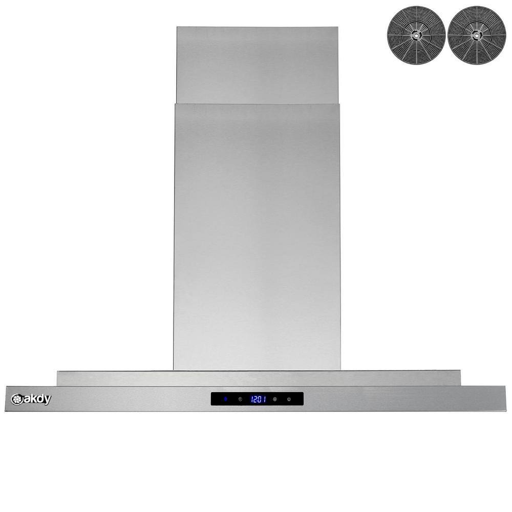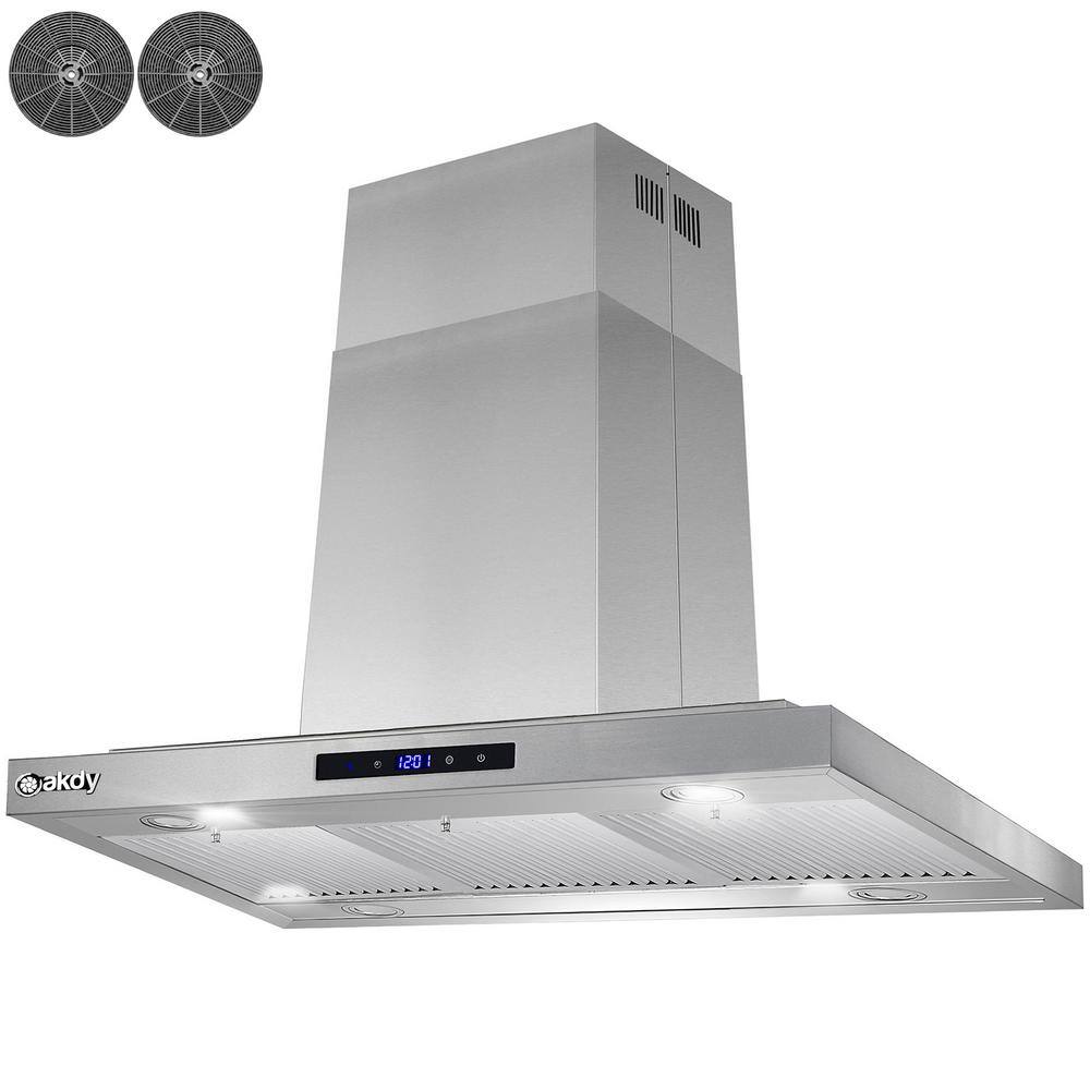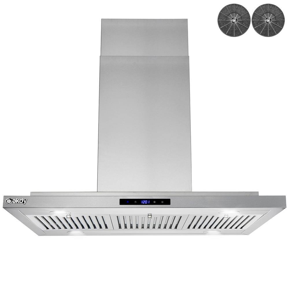 AKDY RH0467 36 in. 350 CFM Convertible Island Mount Range Hood with LED Lights in Stainless Steel. Touch Control and Carbon Filters