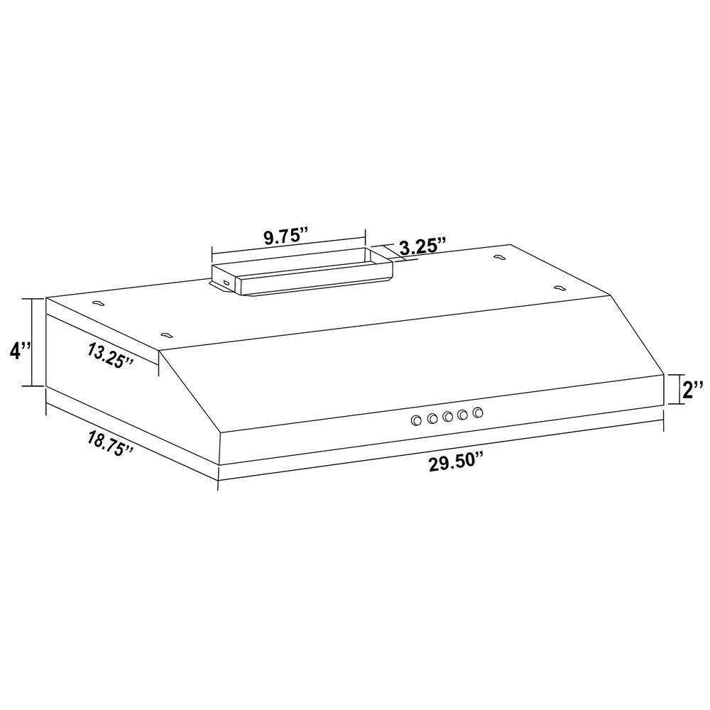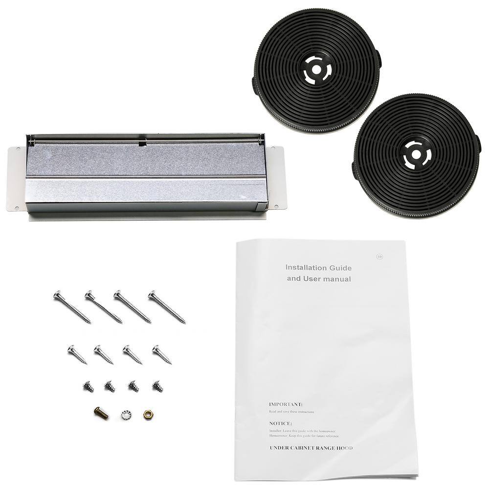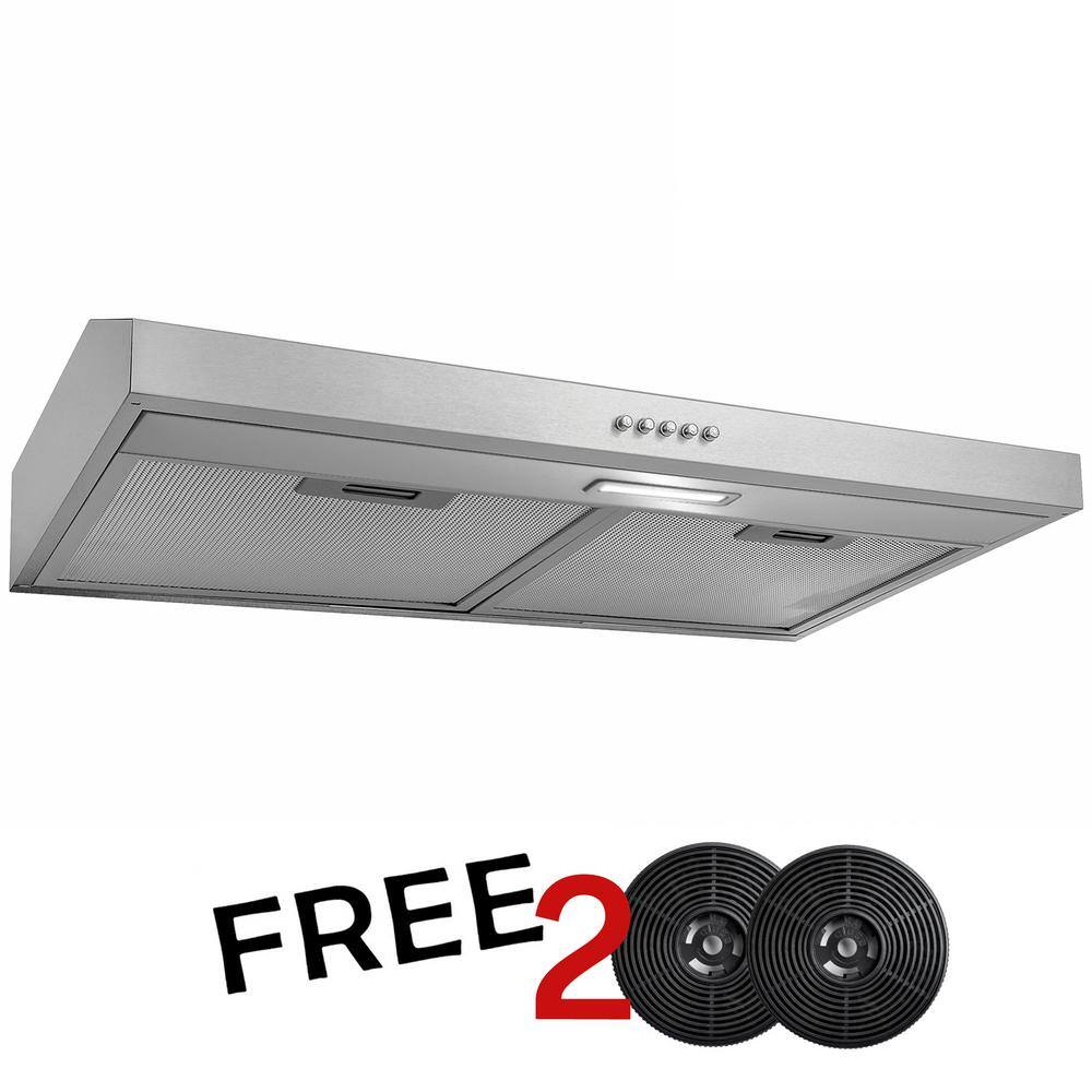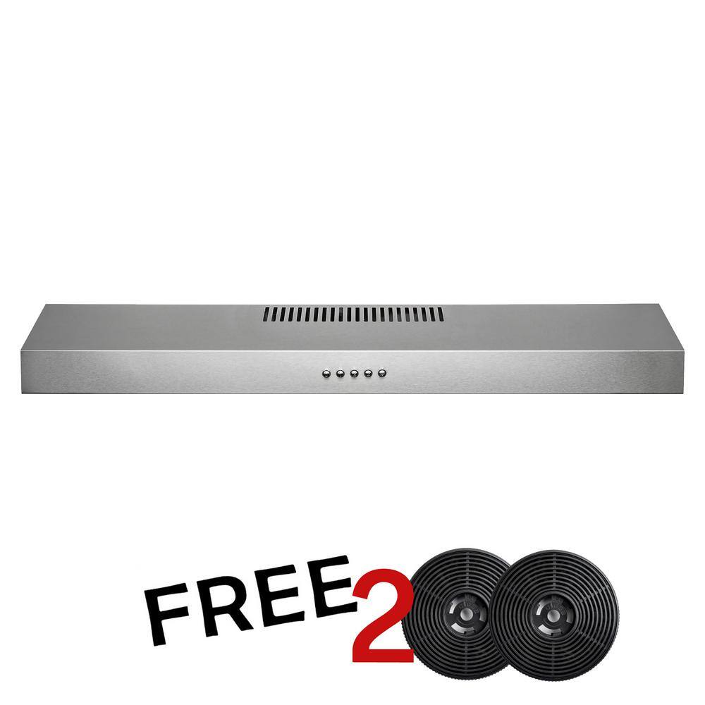 AKDY RH0336CFL 30 in. 58 CFM Convertible Under Cabinet Range Hood in Brushed Stainless Steel with 2 Carbon Filters and Push Button