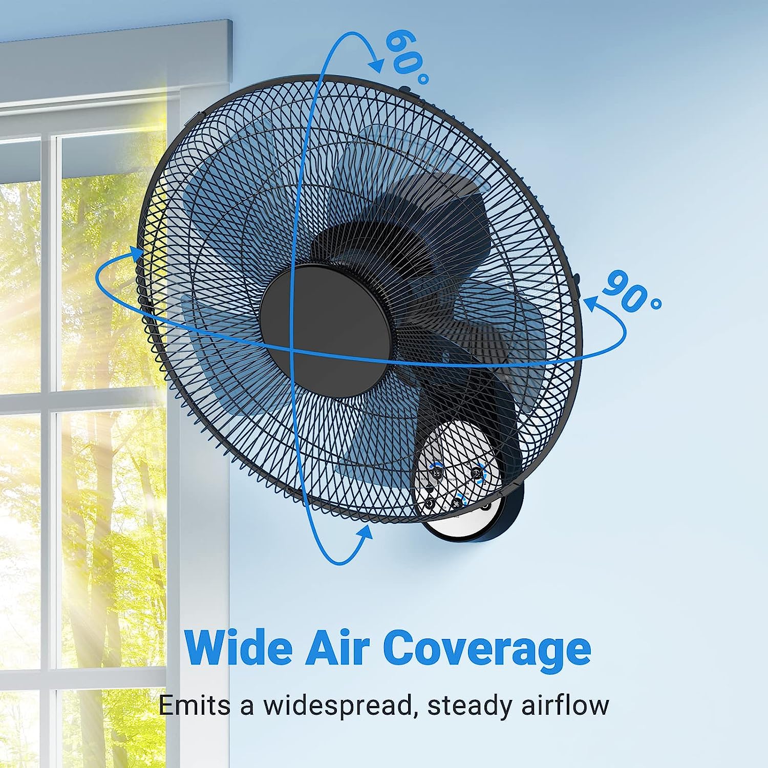 Mirdred Wall Mount Fan. 16 Inch 5 Blades 5 Speeds Wall Fan with Remote Control. 90 Degree 8 Hour Timer Oscillating Fan for Bedroom Home Kitchen. Black