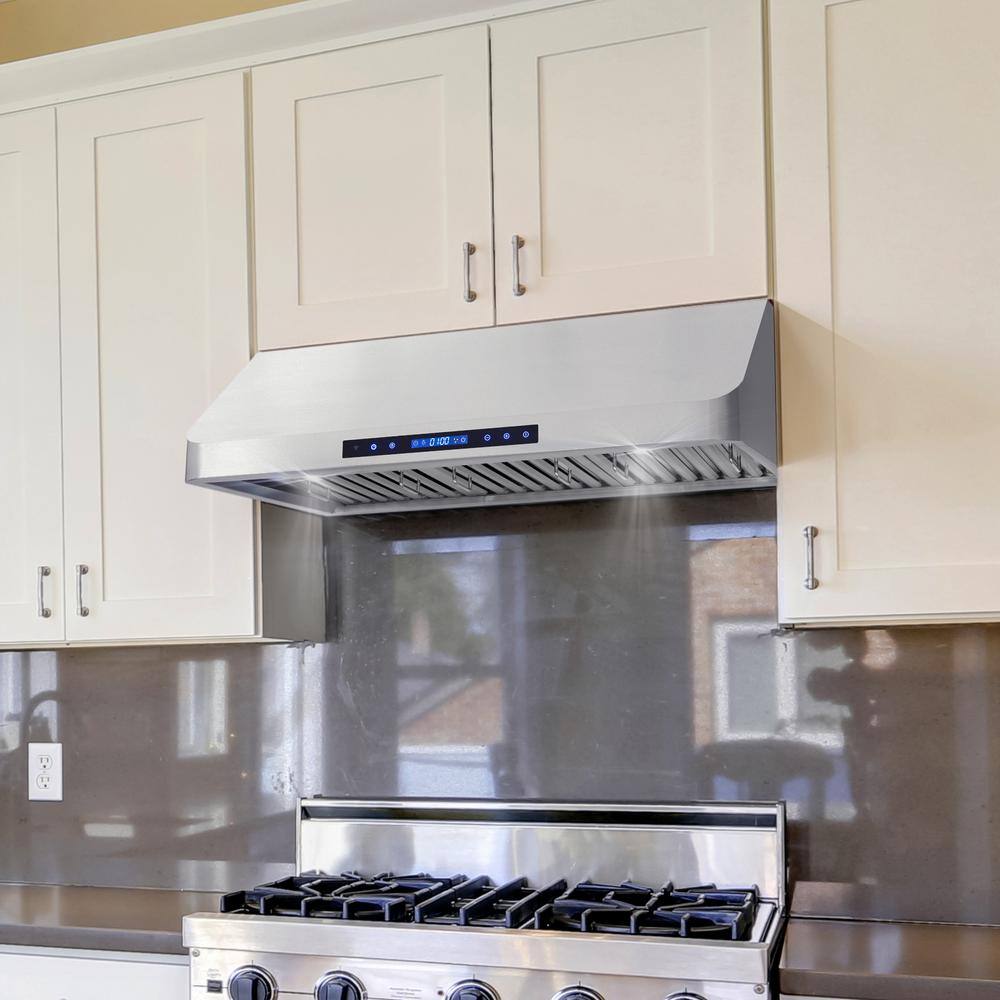 Cosmo COS-QS90 36 in. Ducted Under Cabinet Range Hood in Stainless Steel with Touch Display. LED Lighting and Permanent Filters