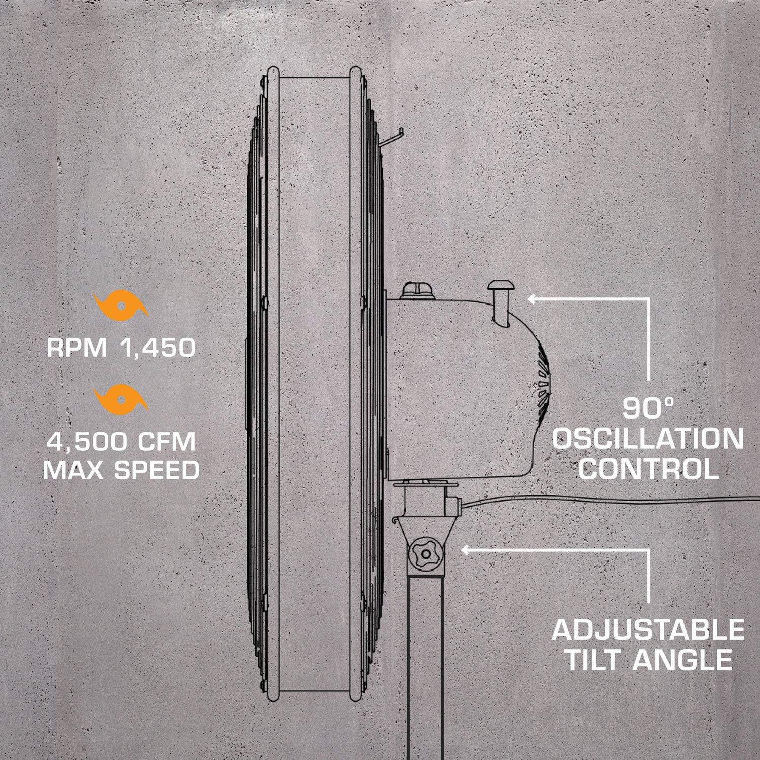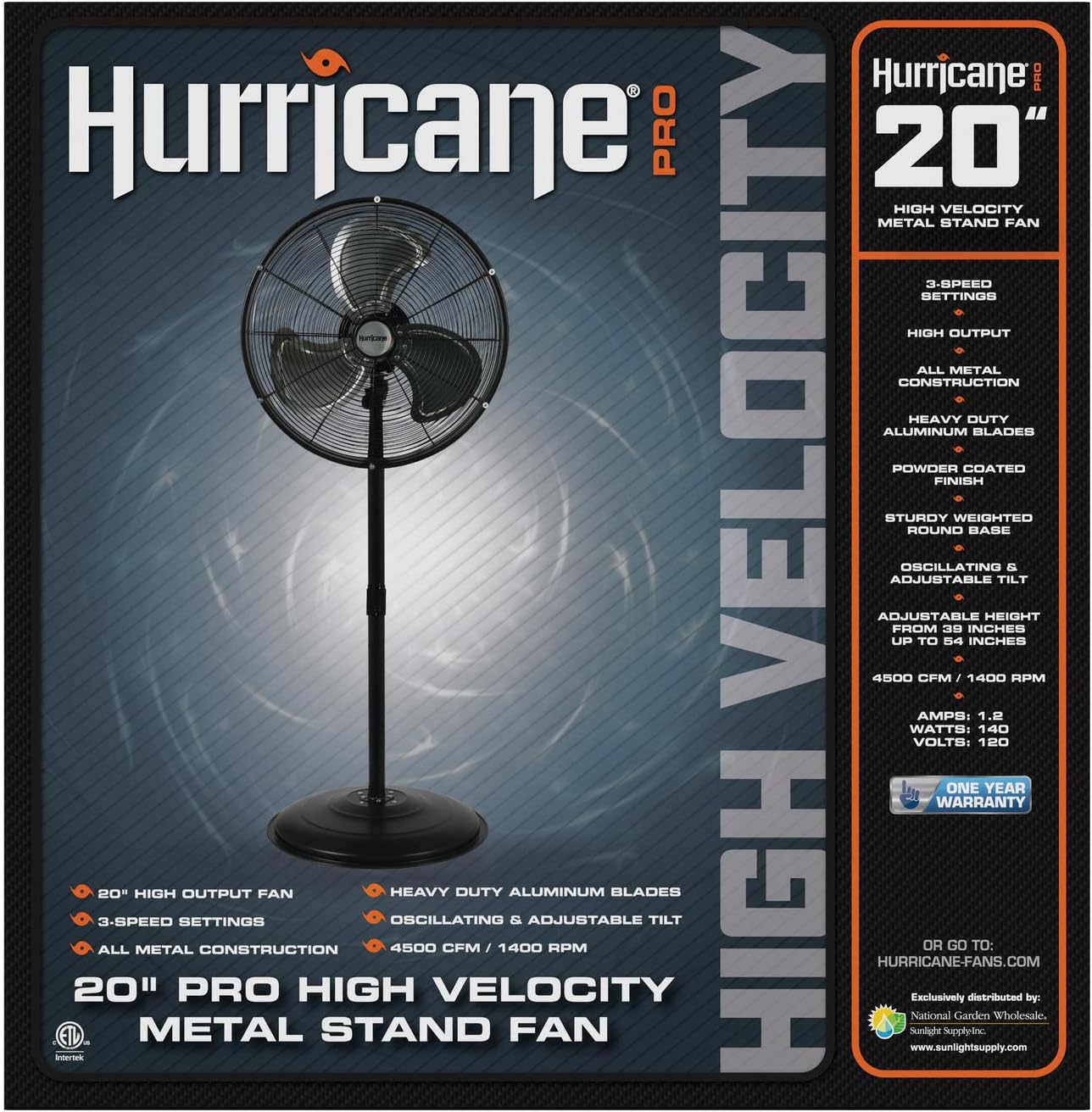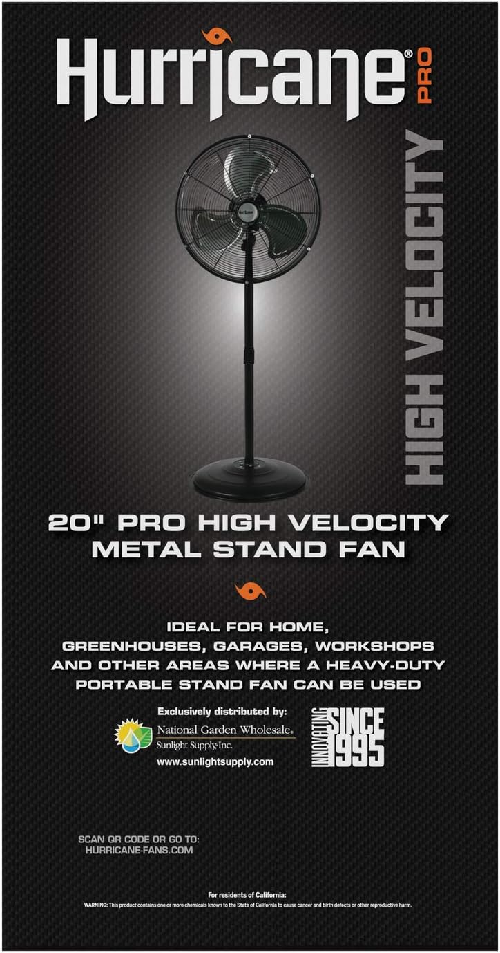 Hurricane Stand Fan - 20 Inch. Pro Series. High Velocity. Heavy Duty Metal For Industrial. Commercial. Residential. & Greenhouse Use - ETL Listed. Black