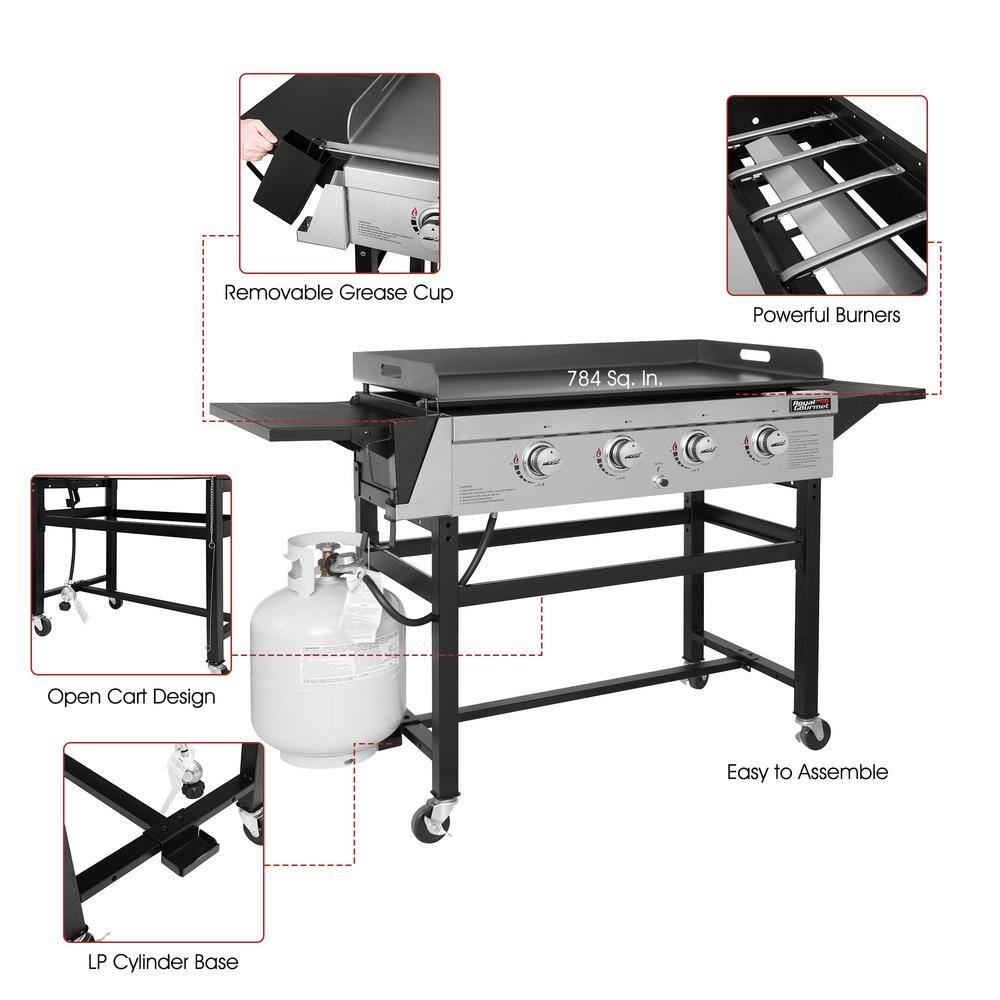 Royal Gourmet GB4001B 4-Burner Propane Gas Grill Griddle for Outdoor Cooking in Black
