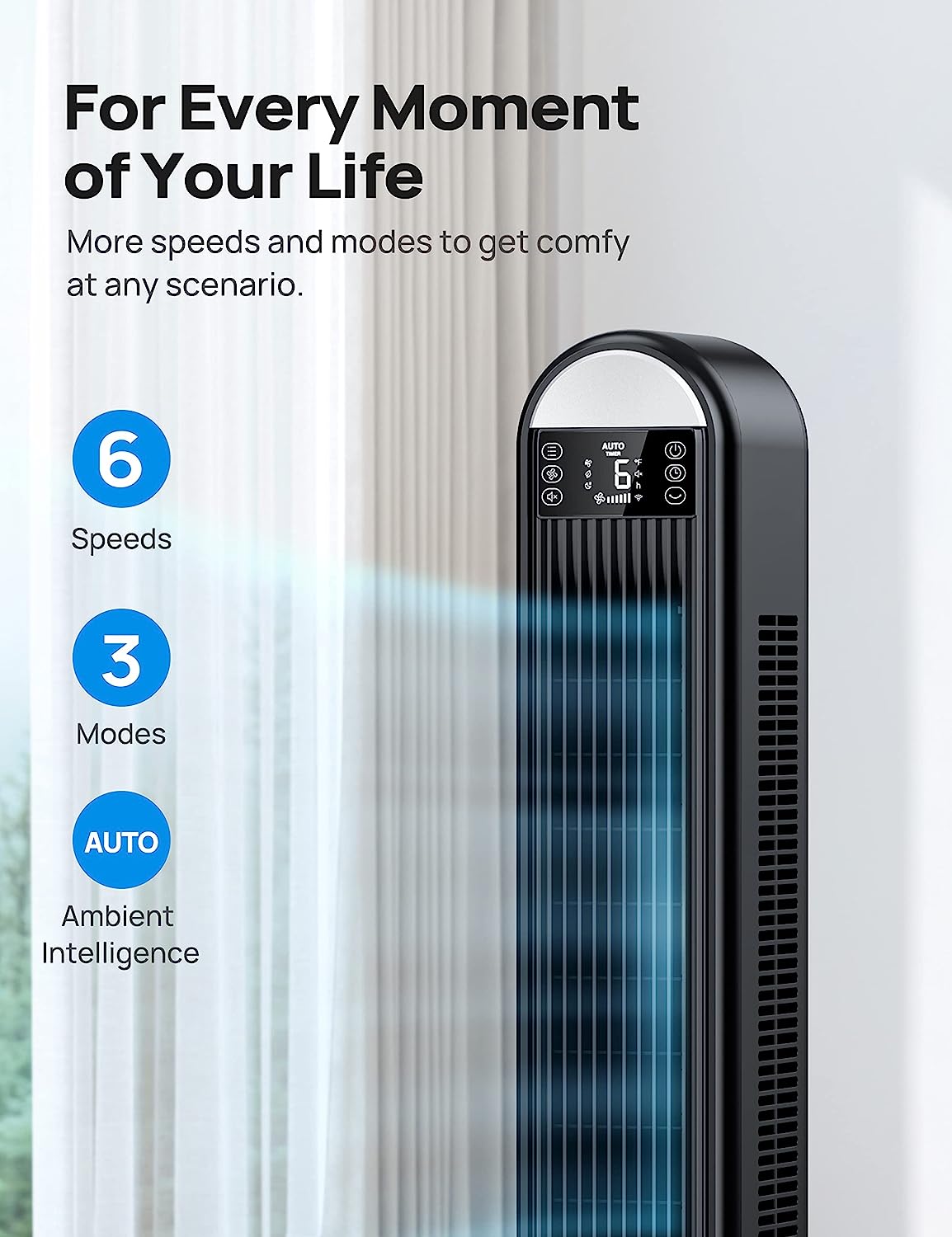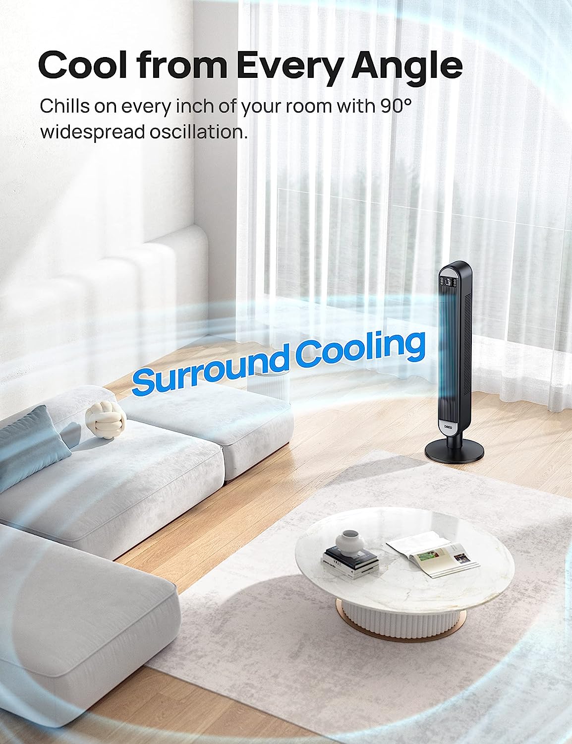 Dreo Tower Fans for Home. 42 Inch 90° Oscillating fan for Bedroom Indoors. Floor Fan with 12H Timer. Large LED Display. Quiet Standing Fan with Remote. Bladeless Fan. 6 Speeds 4 Modes. Cruiser Pro T2. Standard