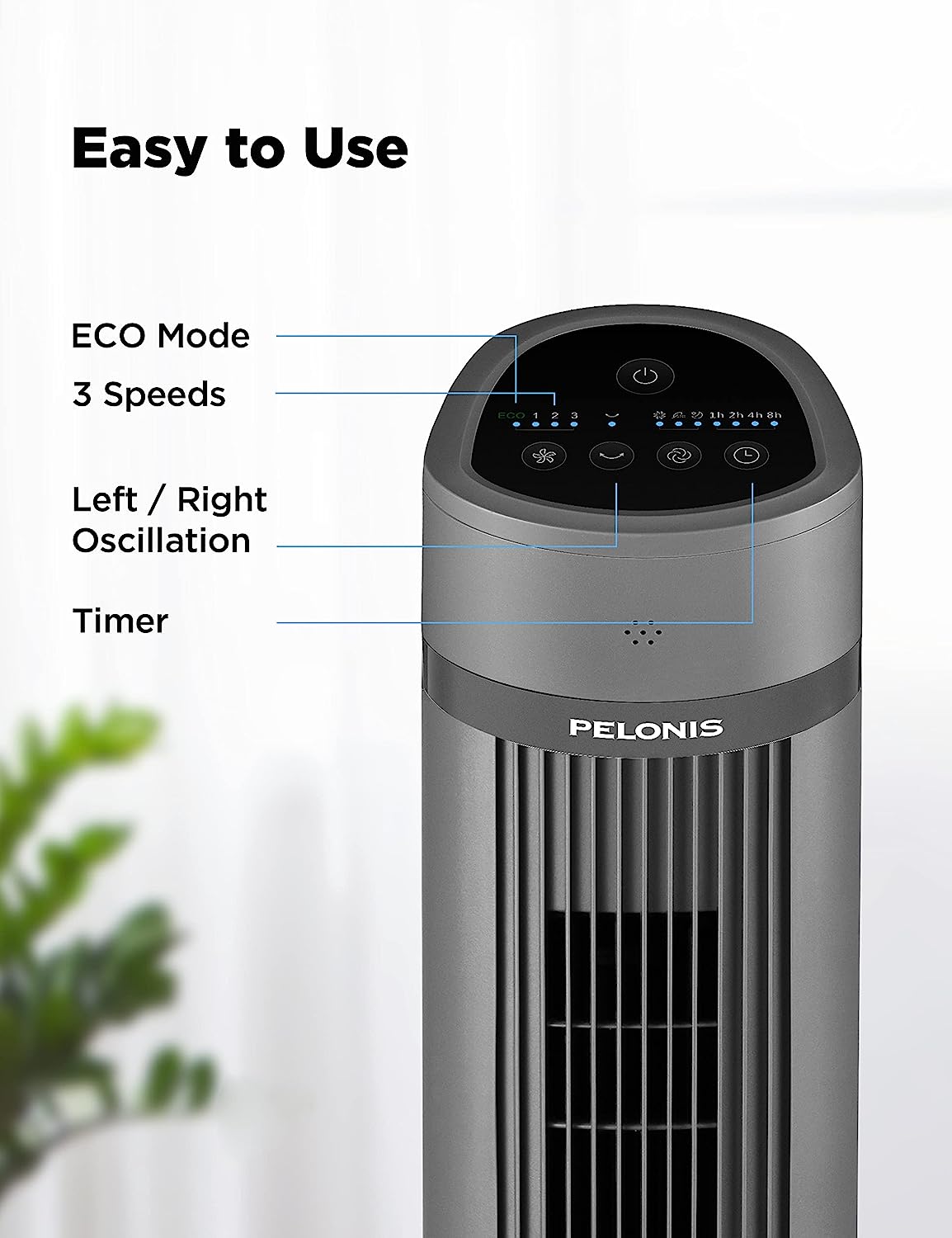 PELONIS 40”Oscillating Tower Fan | Remote Control | Quiet Stand Up | 3 Speed Settings | 3 Modes |15-Hour Timer | LED Display | for Bedroom Home Office Use| Black