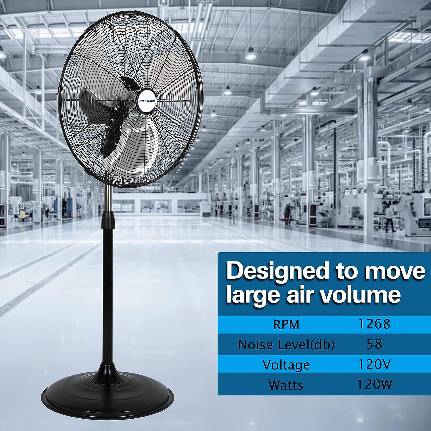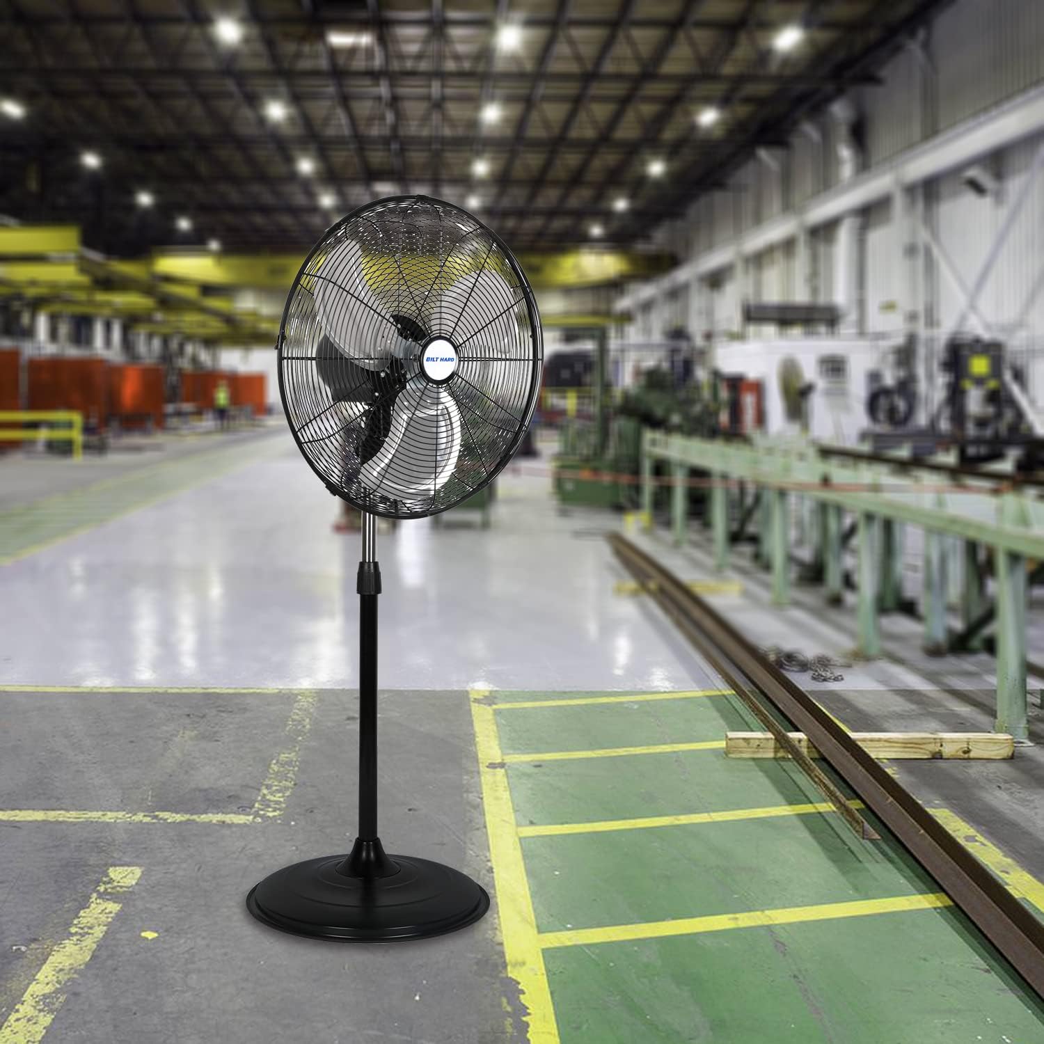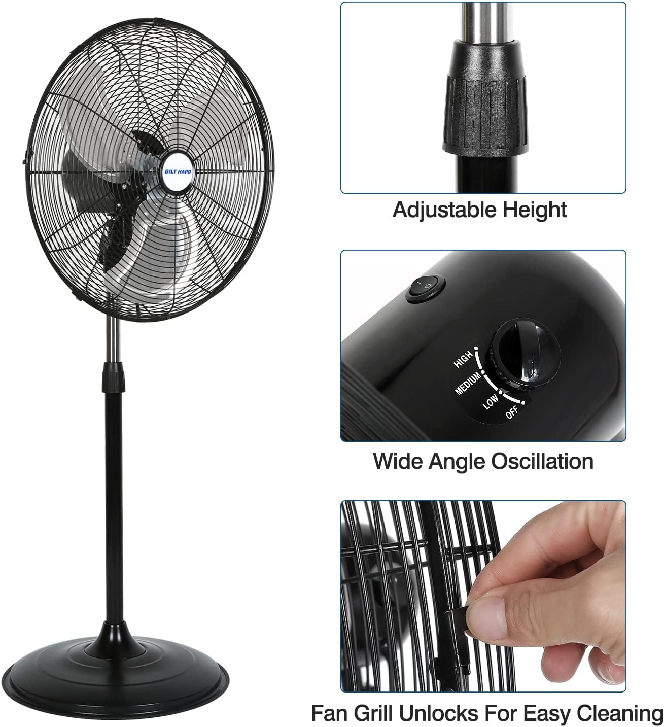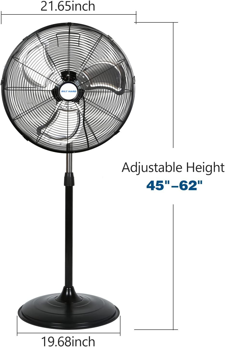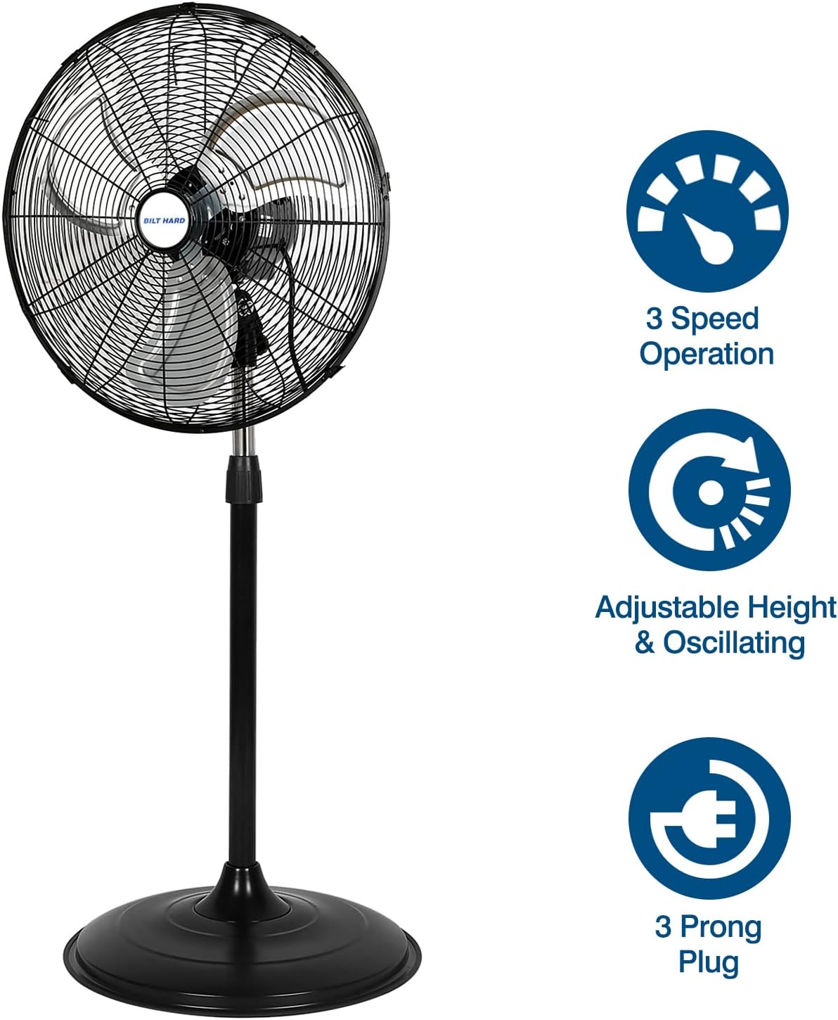 BILT HARD 4650 CFM 20″ High Velocity Industrial Pedestal Fan. 3-Speed Oscillating Stand Fan with Aluminum Blades. Heavy Duty Metal Shop Fan for Commercial. Warehouse. and Garage- UL Listed