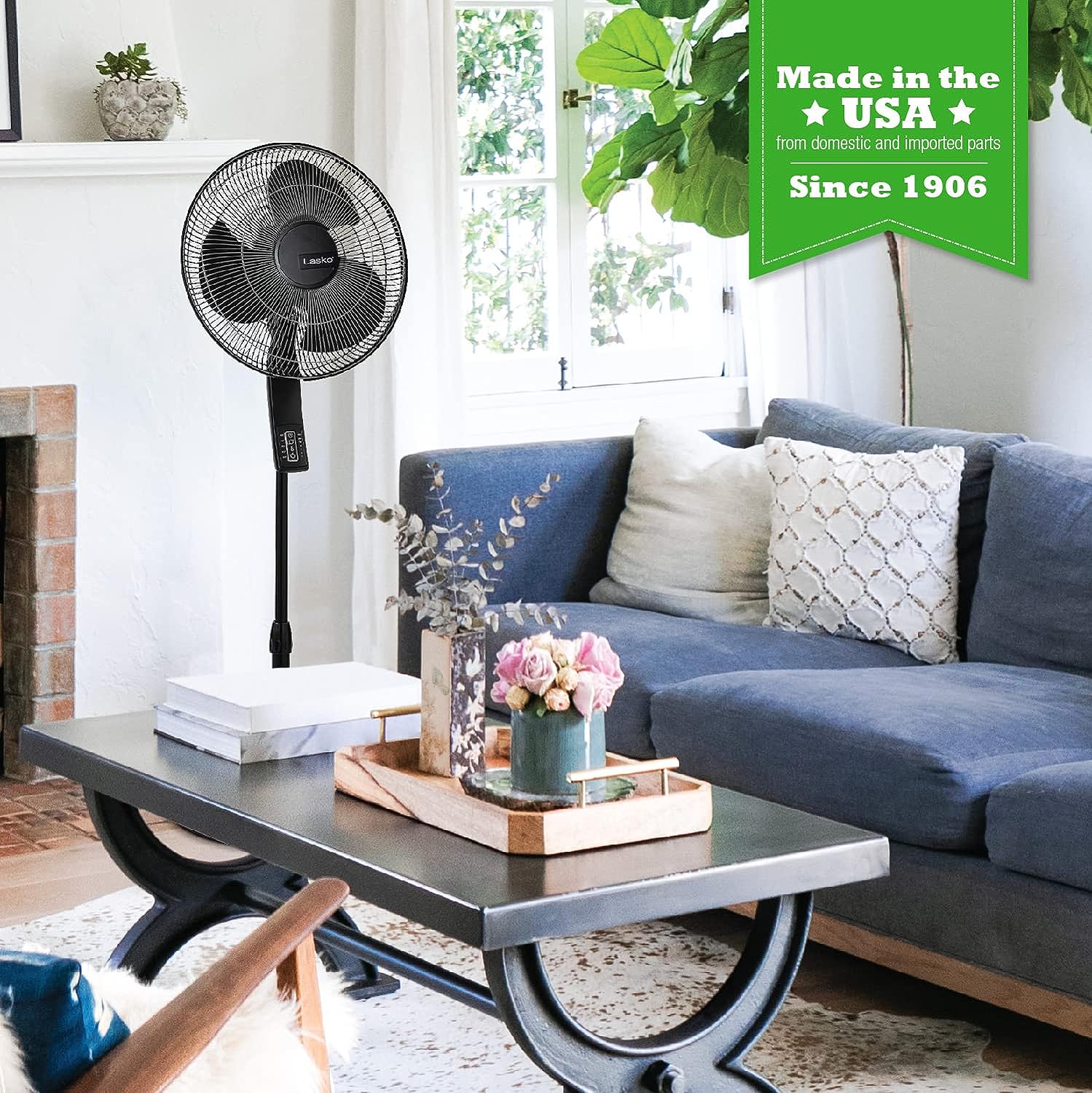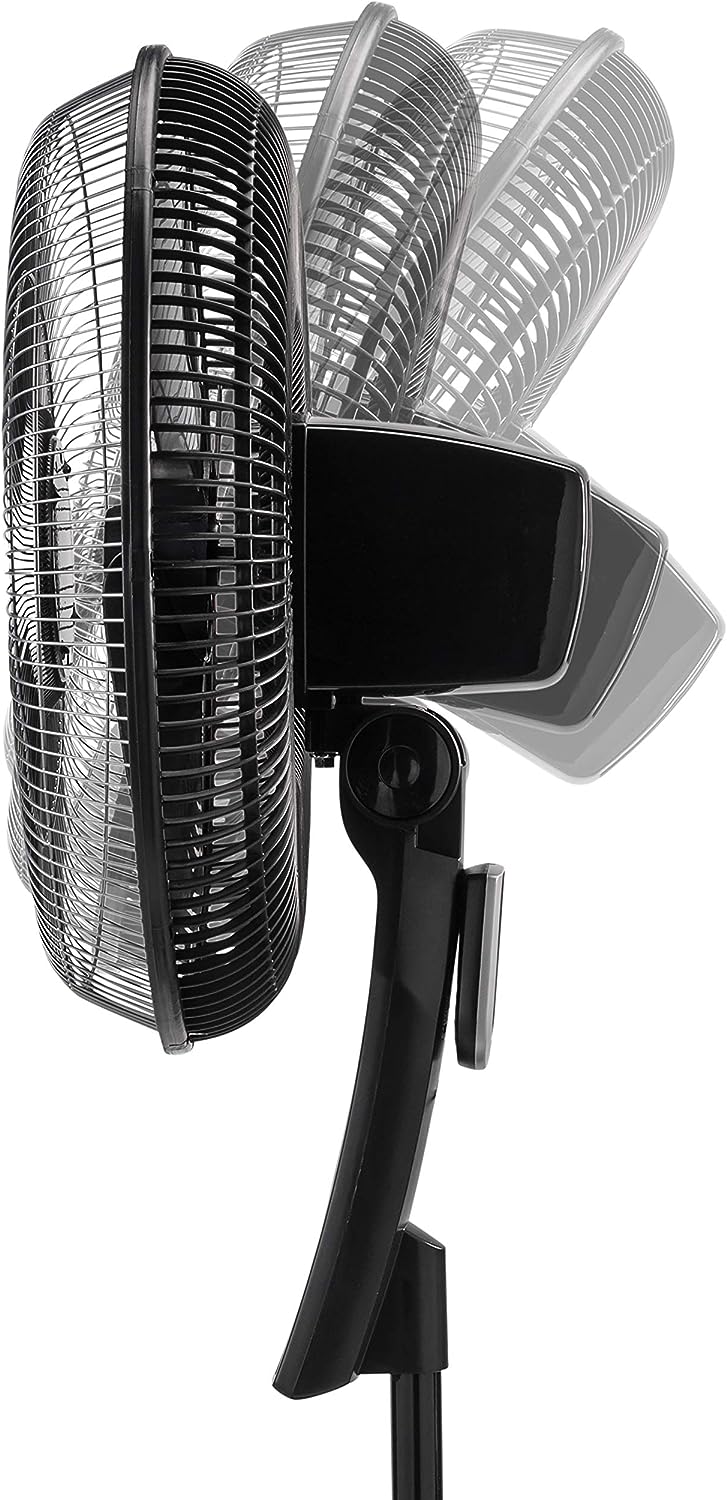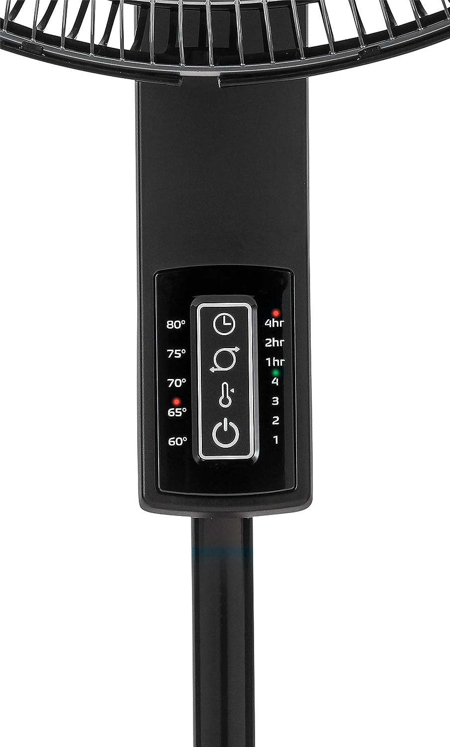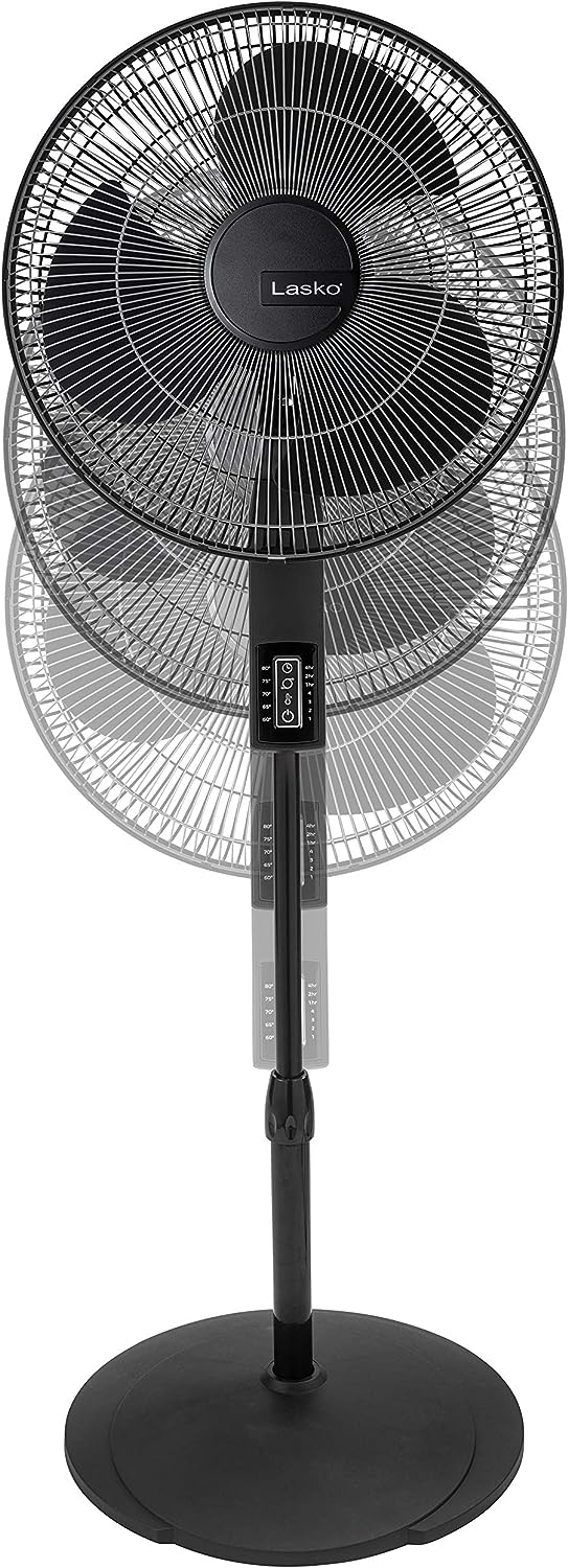 Lasko Oscillating Pedestal Fan. Thermostat. Adjustable Height. Remote Control. Timer. 4 Speeds. for Bedroom. Living Room. Office & Dorm. 16″. Black. S16612