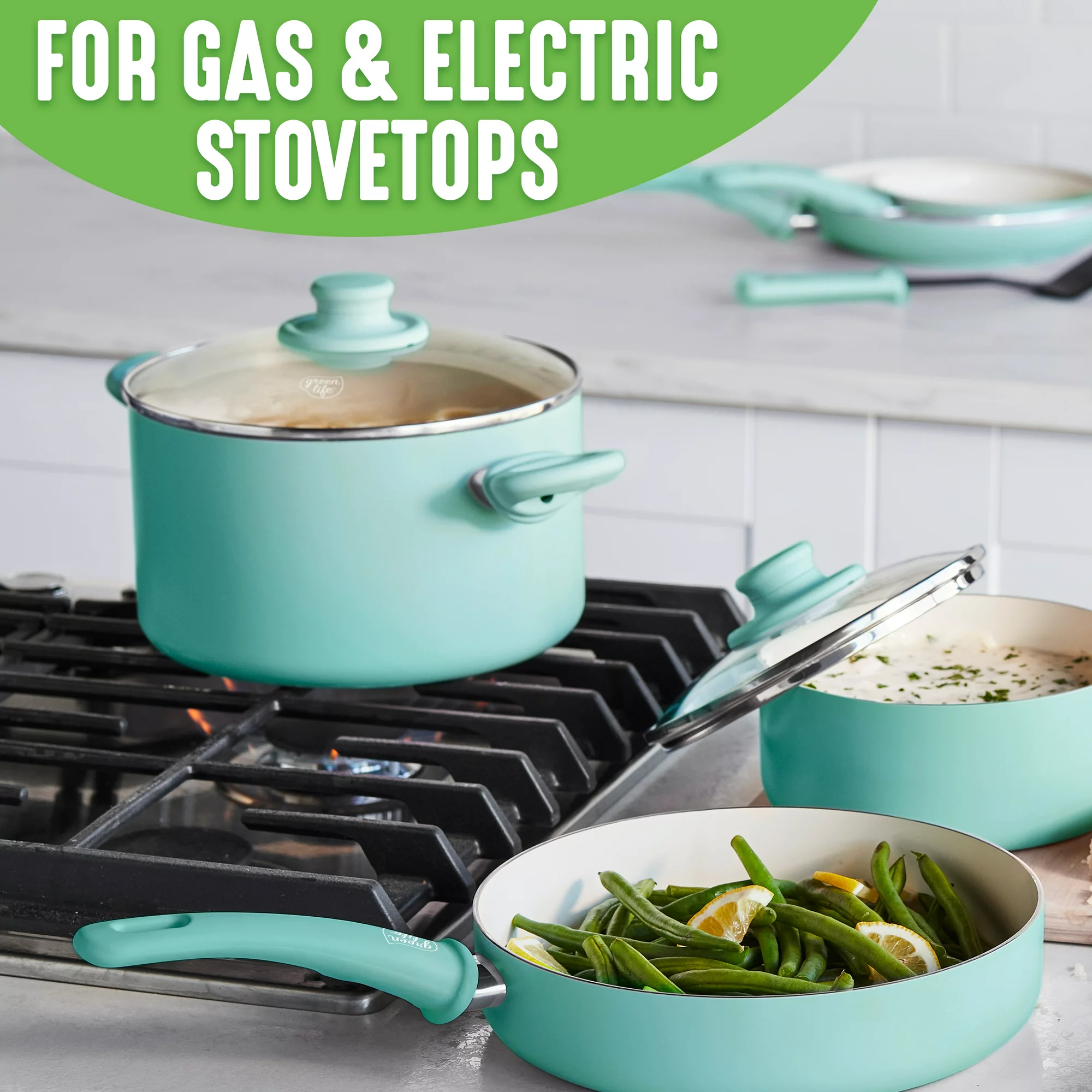 GreenLife Soft Grip Toxin-Free Healthy Ceramic Non-stick Cookware Set. 18 Piece. Turquoise