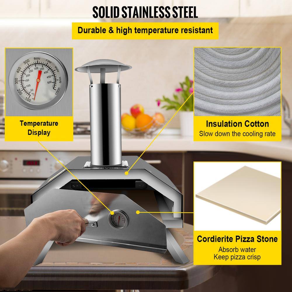 VEVOR BXSPSLXXJLKSJXQ21V0 Wood Burning Pizza Oven 12 in. Stainless Steel Portable Outdoor Pizza Oven with Complete Accessories for Outdoor Cooking