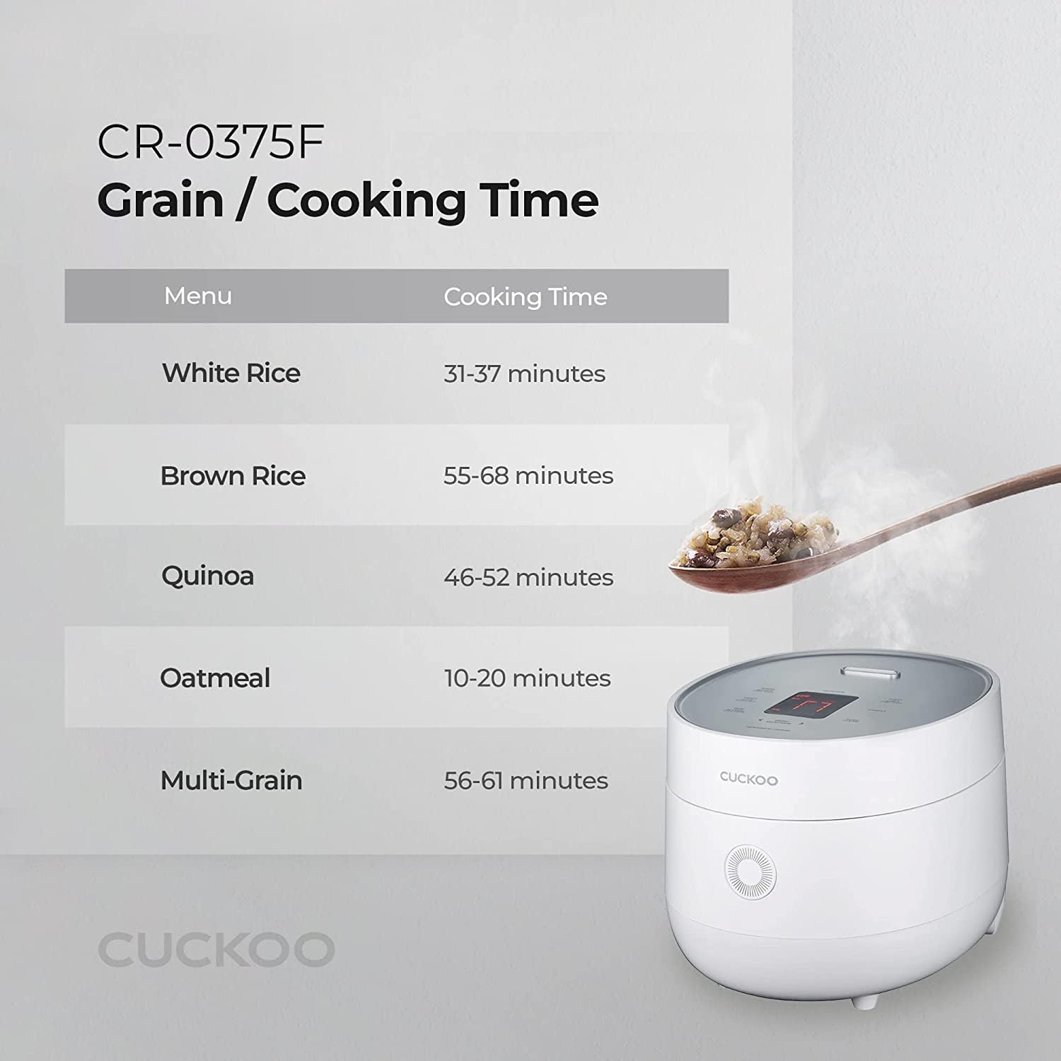 CUCKOO CR-0375F | 3-Cup/0.75-Quart (Uncooked) Micom Rice Cooker | 10 Menu Options: Oatmeal. Brown Rice & More. Touch-Screen. Nonstick Inner Pot | White