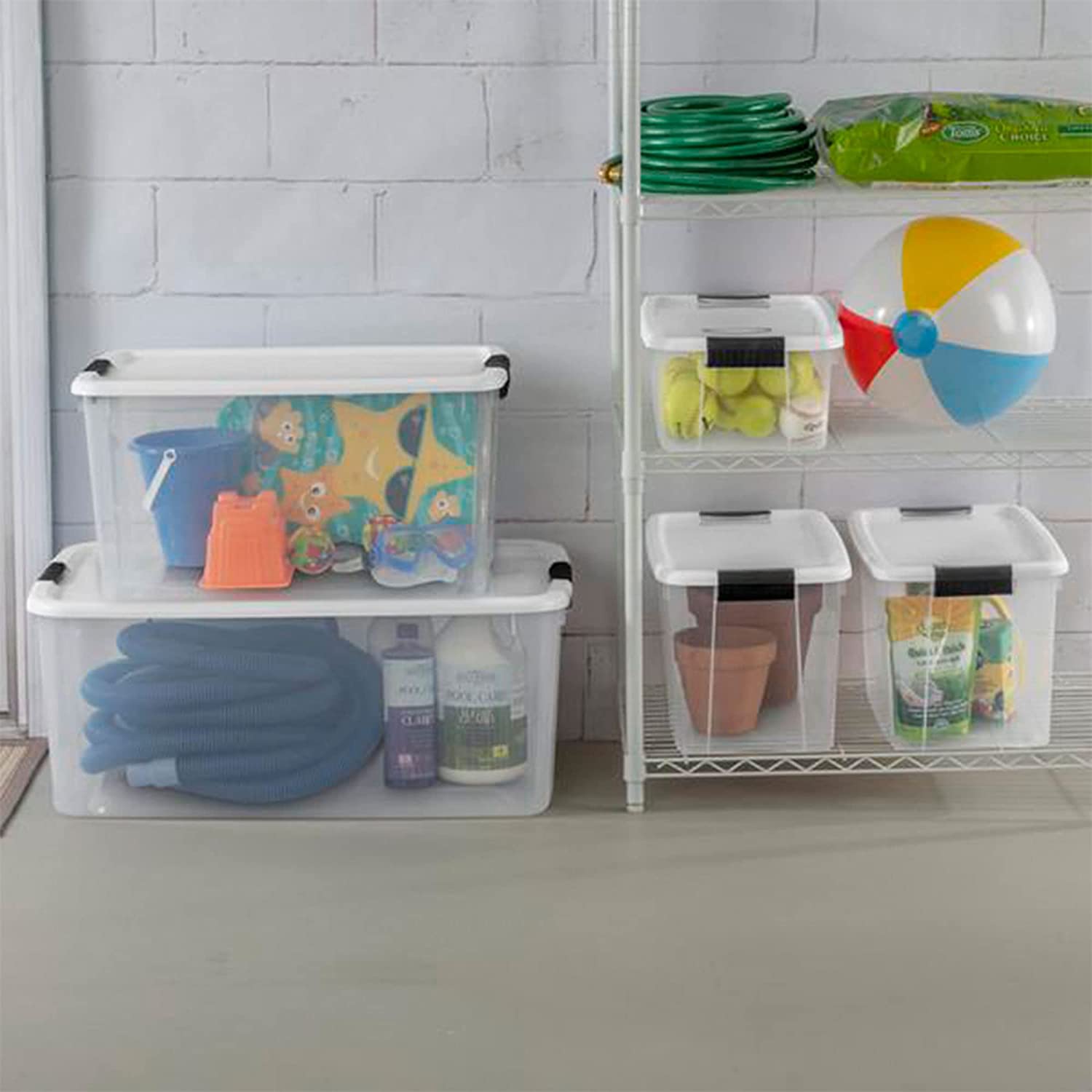 Sterilite 70 Qt Clear Plastic Stackable Storage Bin w/White Latching Lid Organizing Solution. 4 Pack
