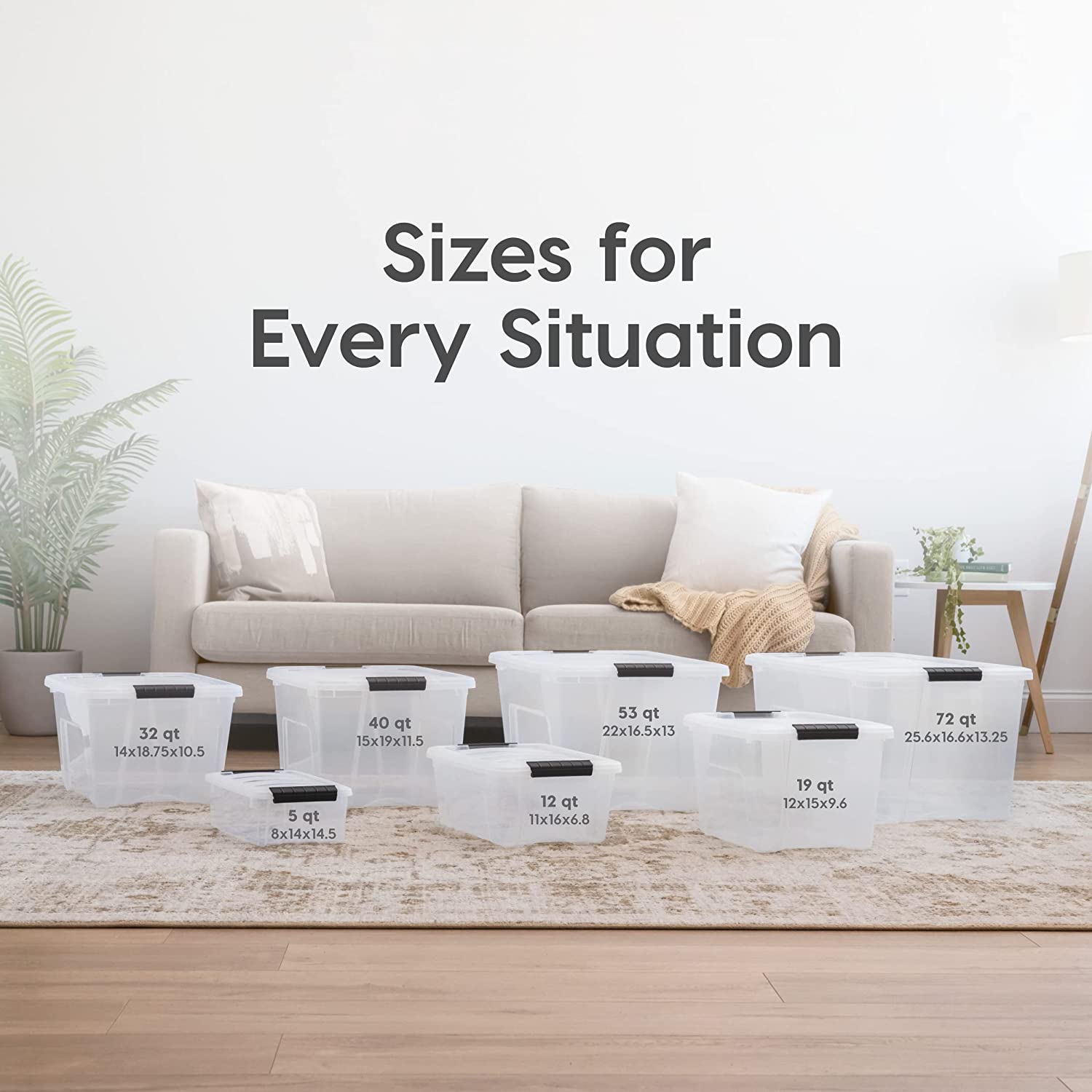 IRIS USA 53 Qt. Plastic Storage Container Bin with Secure Lid and Latching Buckles. 6 pack - Clear. Durable Stackable Nestable Organizing Tote Tub Box Toy General Organization Garage Large