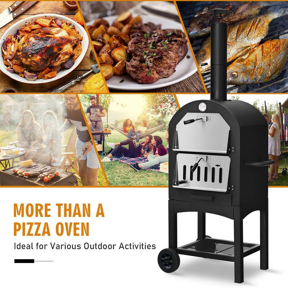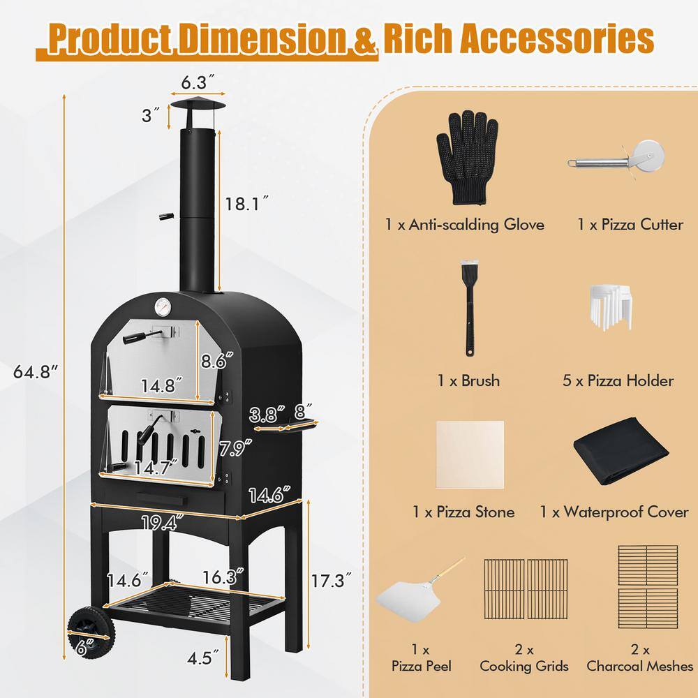 Costway OP70813 Oven Wood Fire Pizza Maker Grill Outdoor Pizza Oven with Pizza Stone and Waterproof Cover