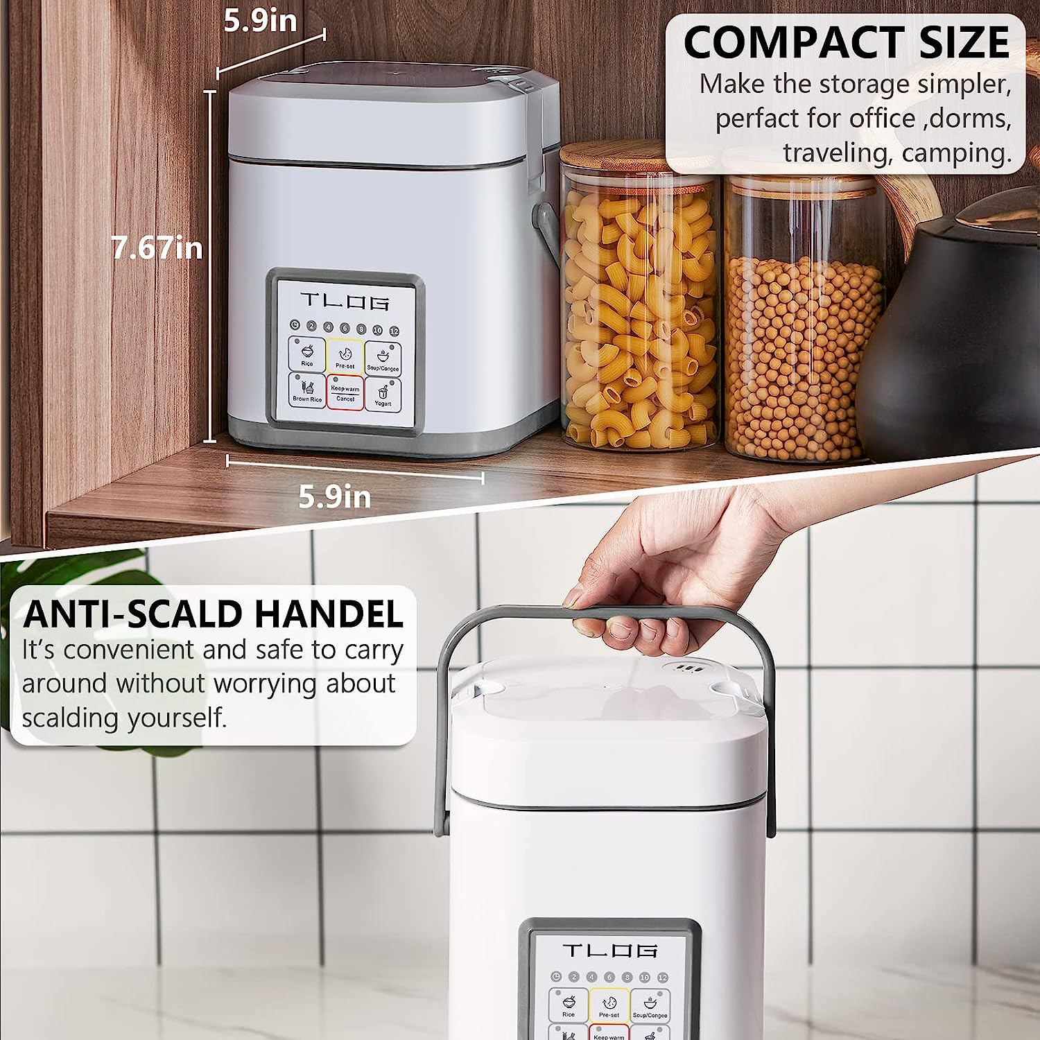 TLOG Mini Rice Cooker 2.5 Cups Uncooked. Healthy Ceramic Coating Portable Rice Cooker. 1.2L Travel Rice Cooker Small for 1-3 People. Personal Rice maker. Food Steamer. 12 Hours delay timer. Multi-cooker for Grains. Oats. Grey-2