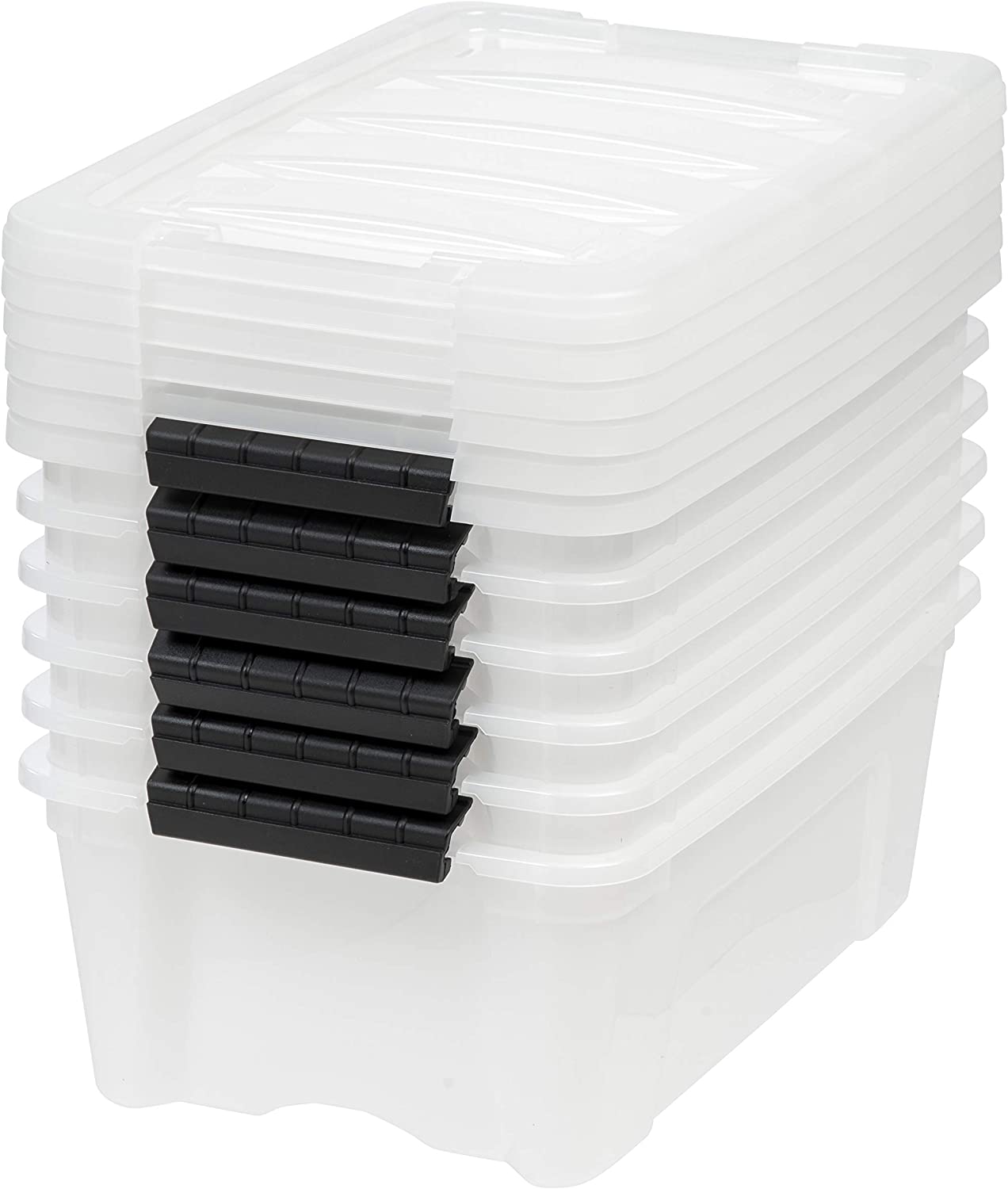 IRIS USA 12 Qt. Plastic Storage Container Bin with Secure Lid and Latching Buckles. 6 pack - Pearl. Durable Stackable Nestable Organizing Tote Tub Box Toy General Organization Small