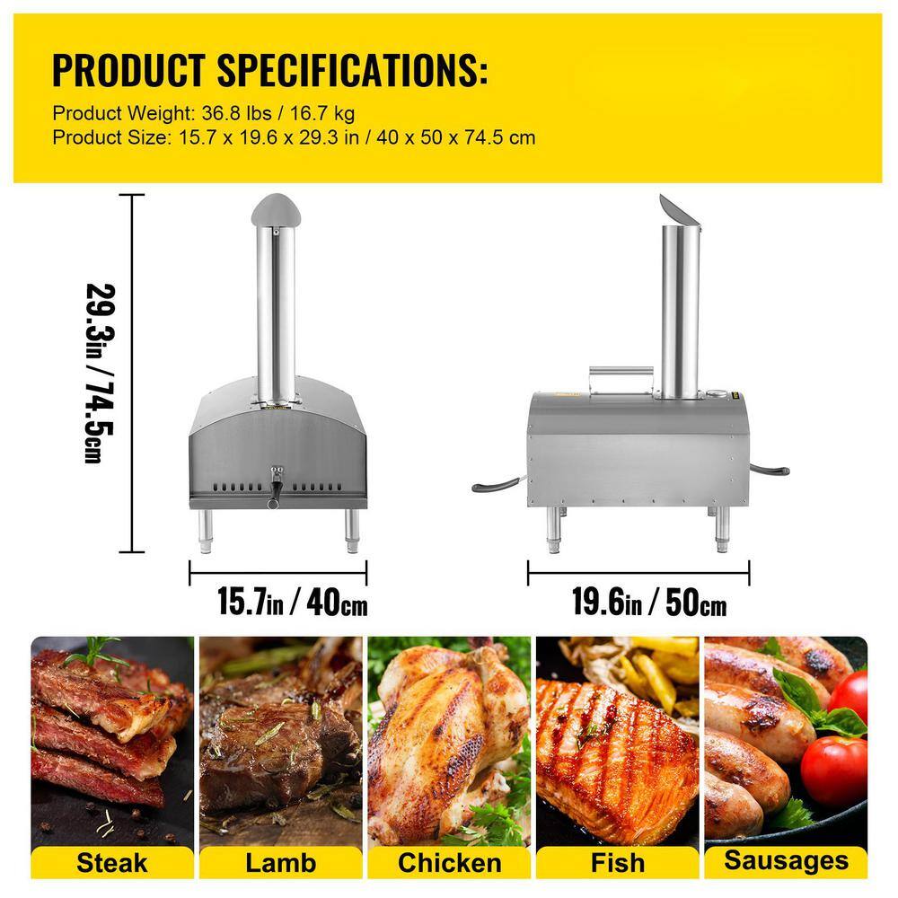 VEVOR PSLHWBXSWJLK8A3I3V0 Pizza Oven 12 in. Stainless Steel Portable Charcoal Fired Pizza Maker 932℉ Max Temperature Outdoor Pizza Oven. Silver
