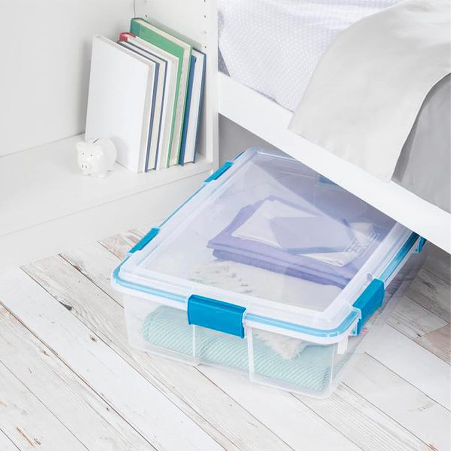Sterilite Multipurpose 37 Quart Clear Plastic Under-Bed Storage Tote Bins with Secure Gasket Latching Lids for Home Organization. (4 Pack)
