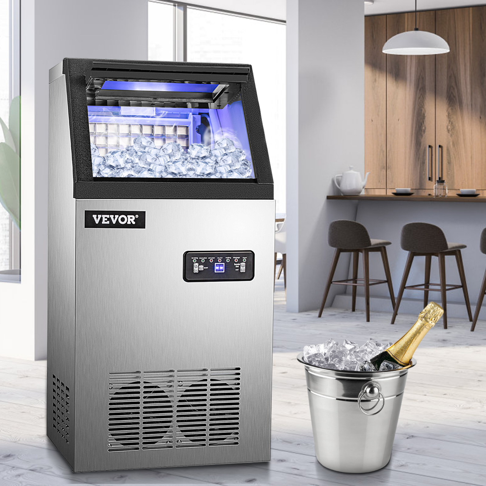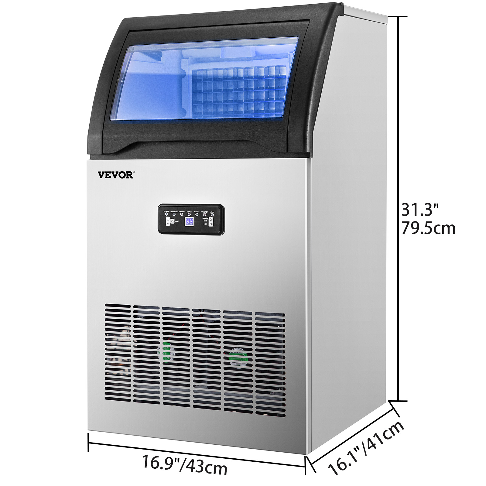 VEVORbrand Commercial Ice Maker 120 lbs/24h. 530W Commercial Ice Machine with 29 lbs Storage Capacity. Stainless Steel Construction Ice Cube Making Machine. includes Water Filter and Connection Hose