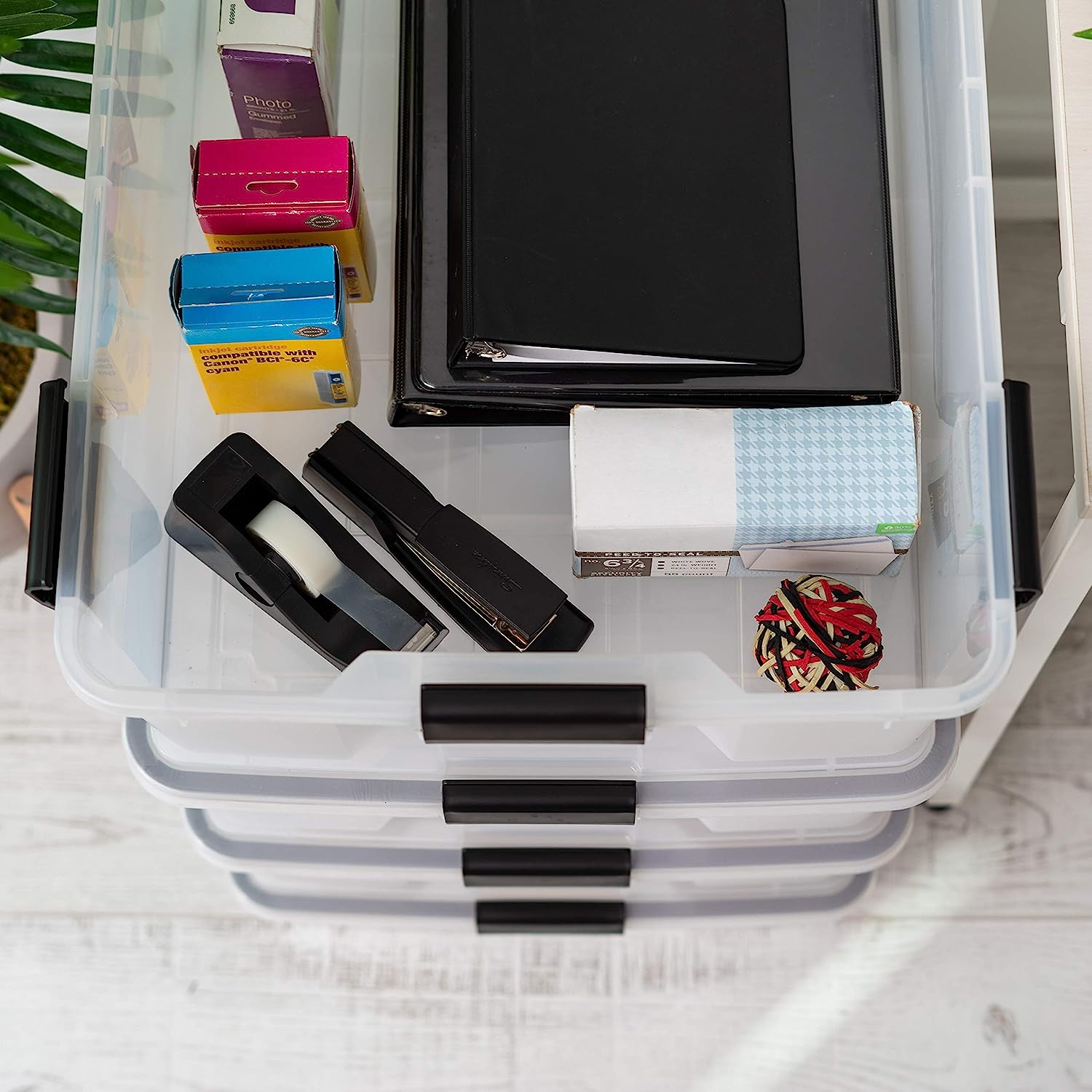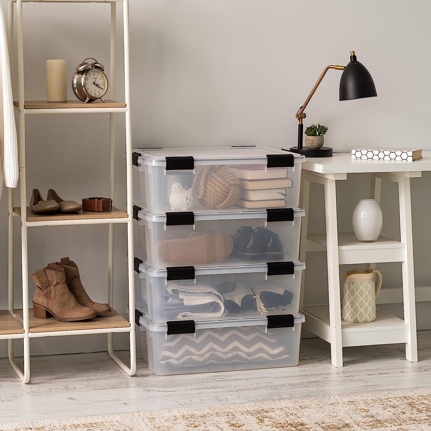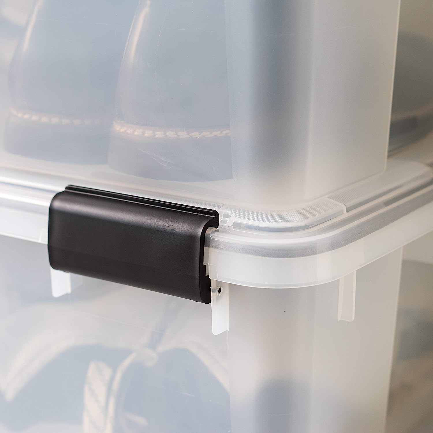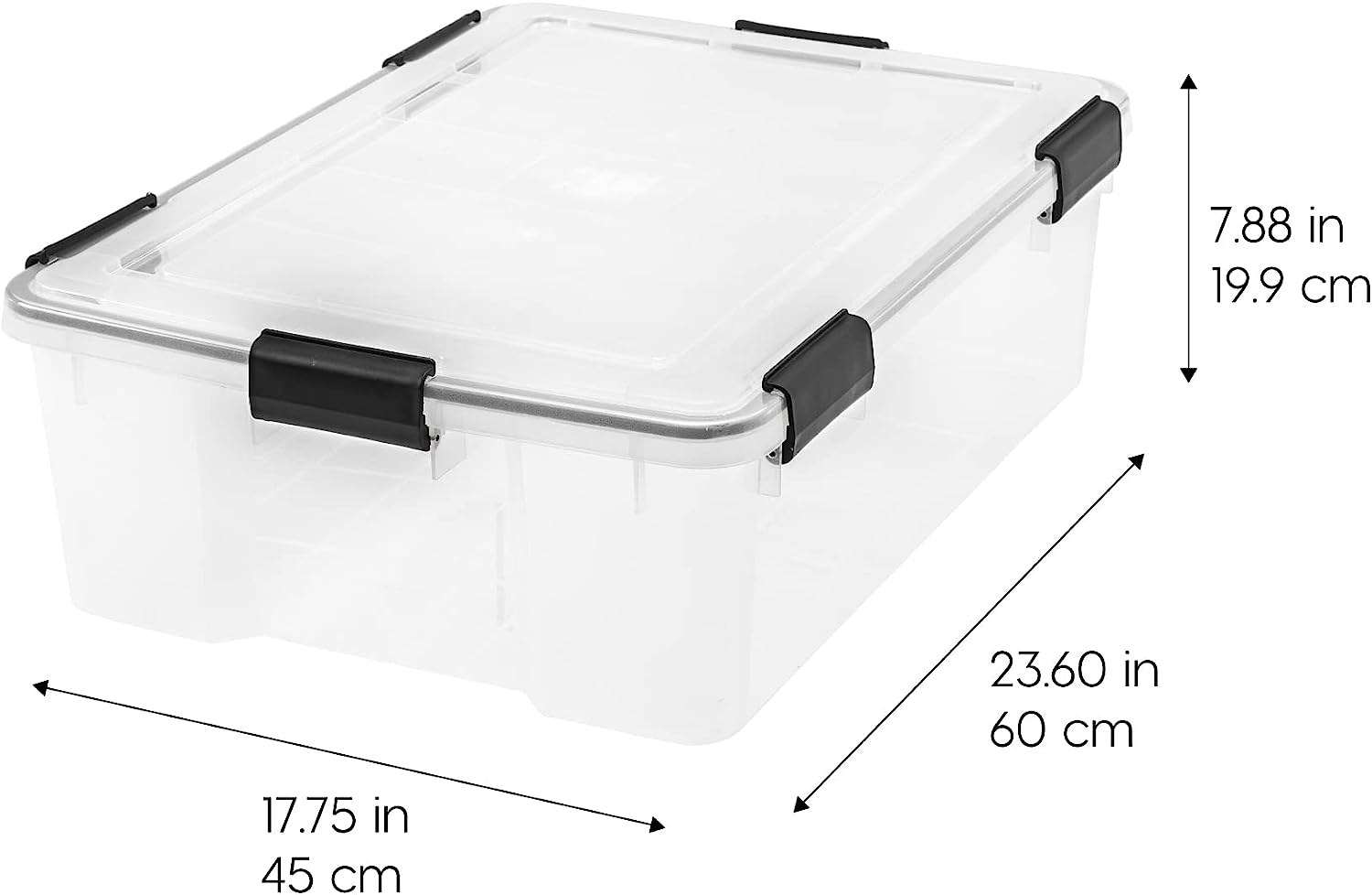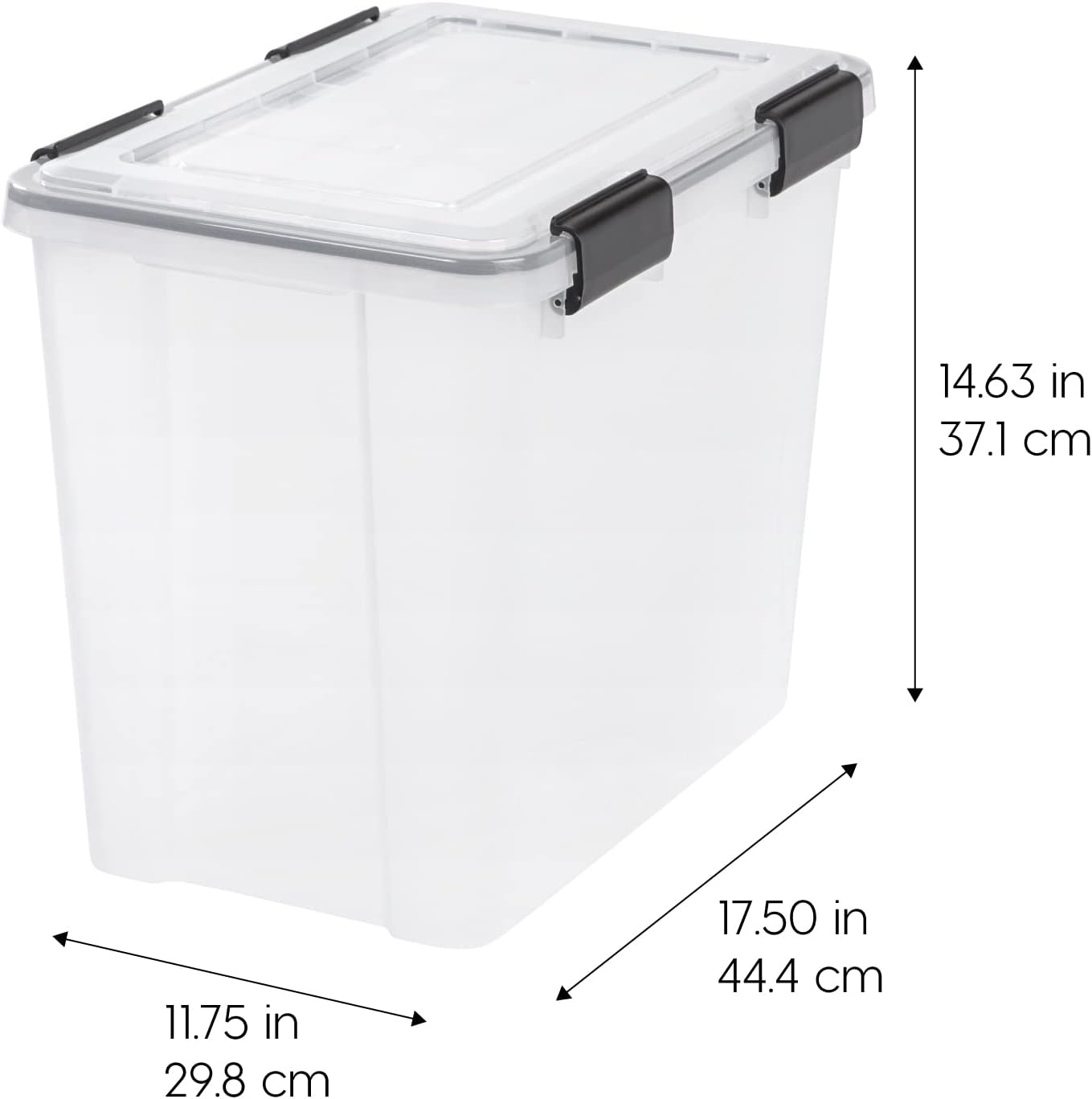 IRIS USA 41 Quart WEATHERPRO Plastic Storage Box with Durable Lid and Seal and Secure Latching Buckles. Weathertight. Clear with Black Buckles. 4 Pack