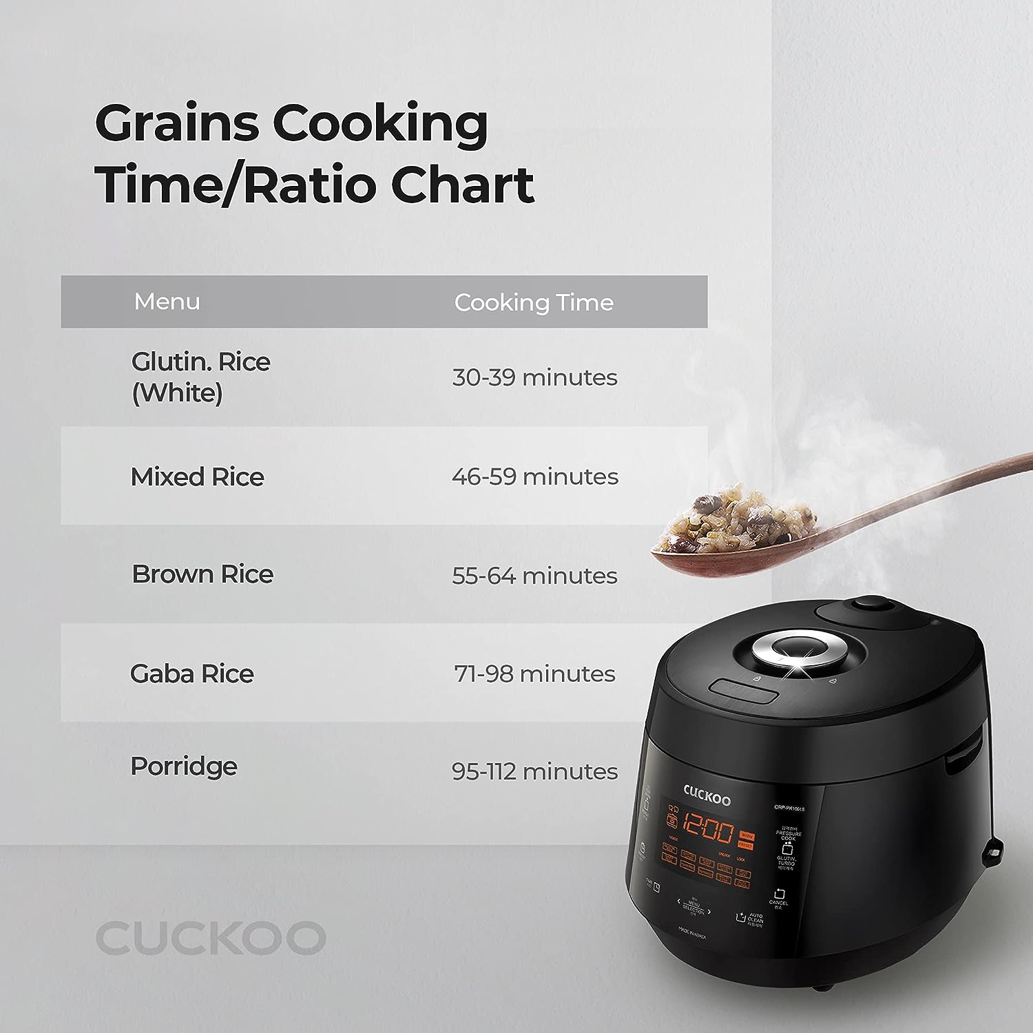 CUCKOO CRP-PK1001S | 10-Cup/2.5-Quart (Uncooked) Pressure Rice Cooker | 12 Menu Options: Quinoa. Scorched Rice. GABA/Brown Rice. Multi-Grain & More. Made in Korea | Black