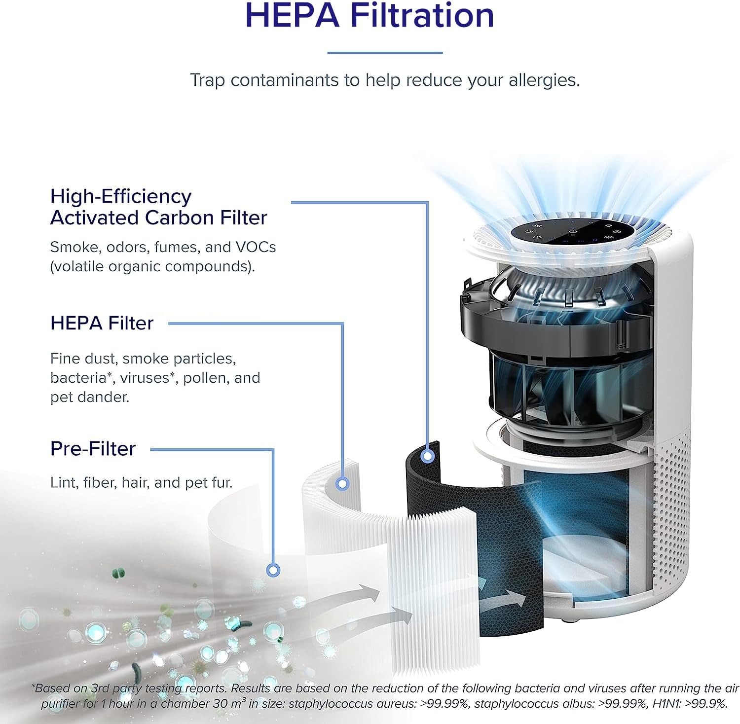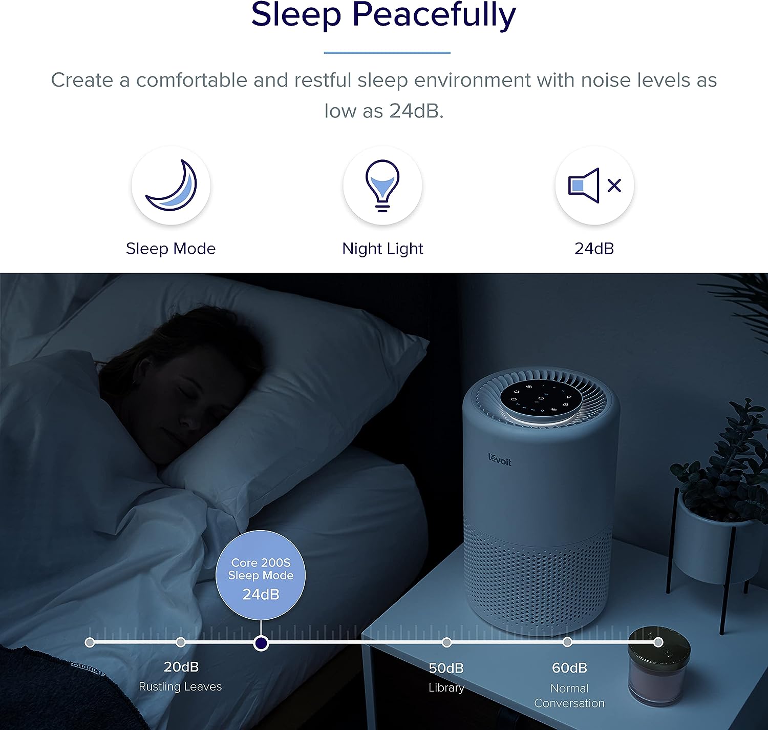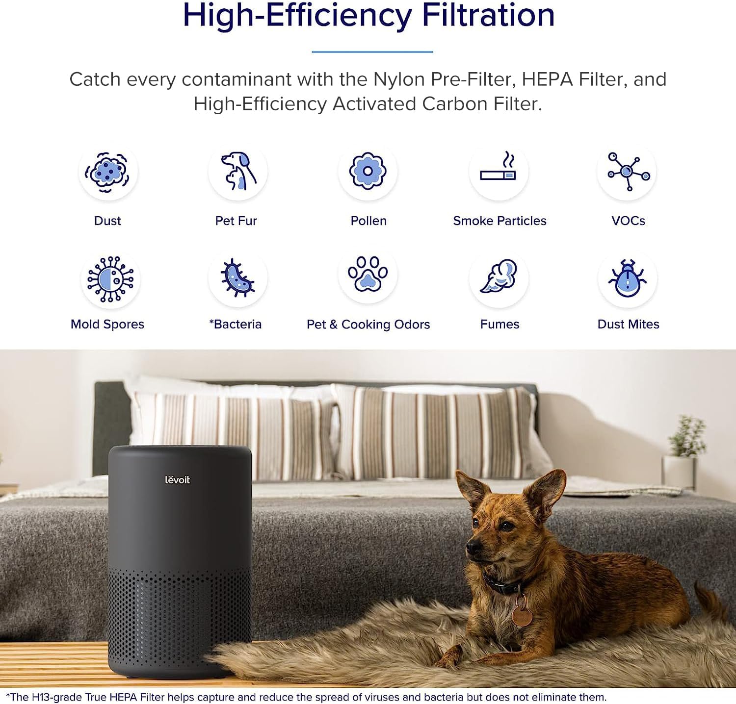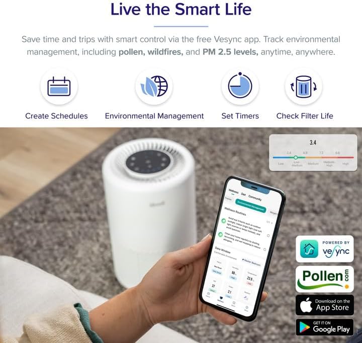 LEVOIT Air Purifier for Home Large Room. Smart WiFi Alexa Control. HEPA Filter for Allergies. Removes Pollutants. Smoke. Dust. Covers up to 915 Sq.Foot. 24dB Quiet for Bedroom. Core 200S. White