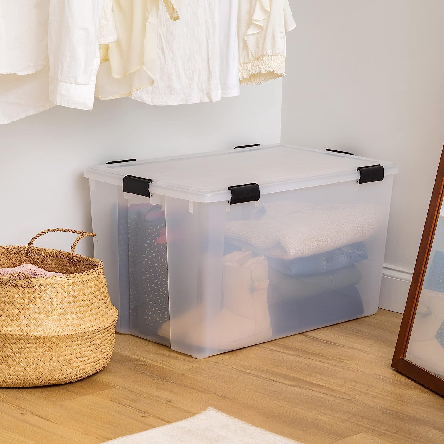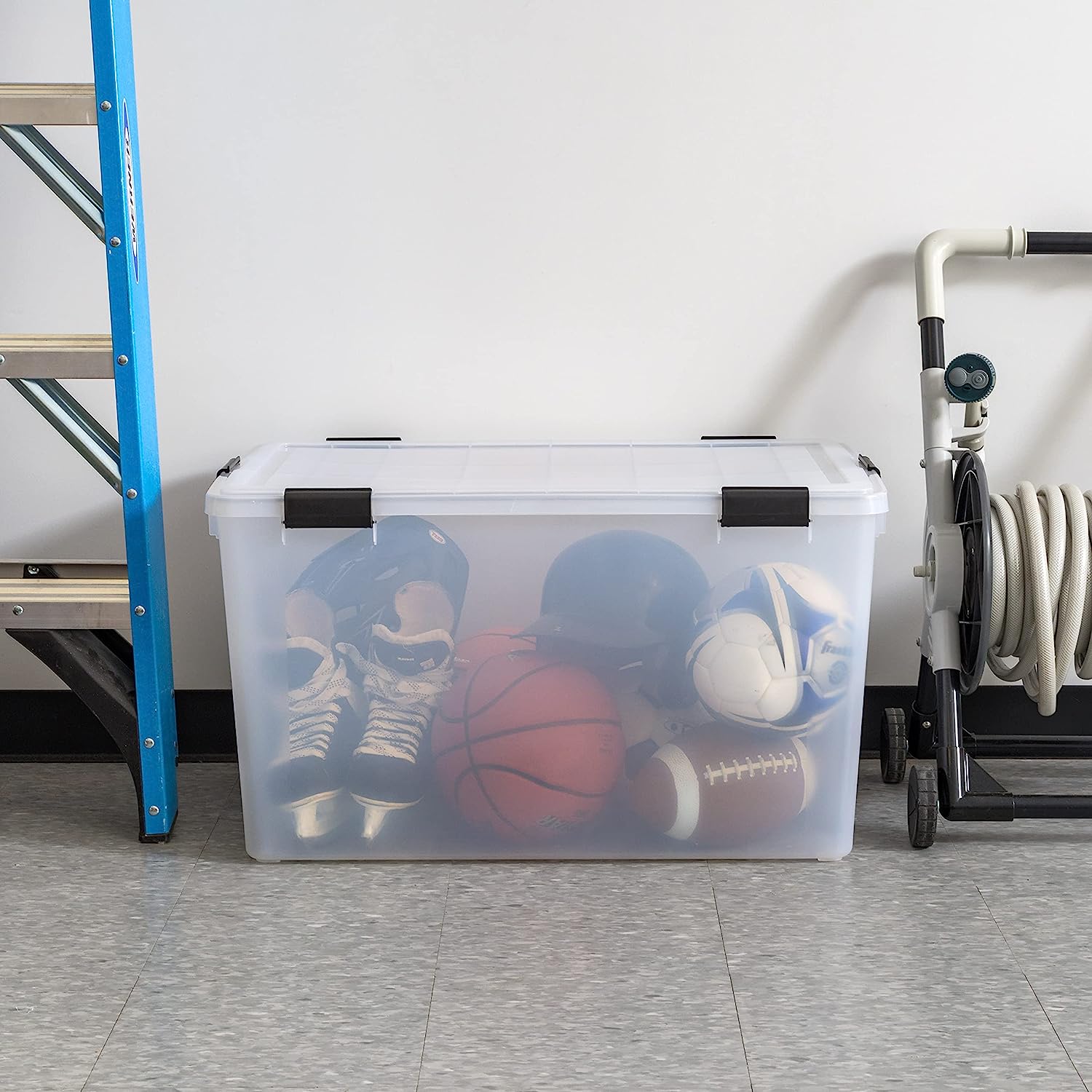 IRIS USA. Inc. UCB-XL Weathertight Plastic Storage Bin Tote Organizing Container with Durable Lid and Seal and Secure Latching Buckles. 156 Qt. - Single. Clear/Black. 500231