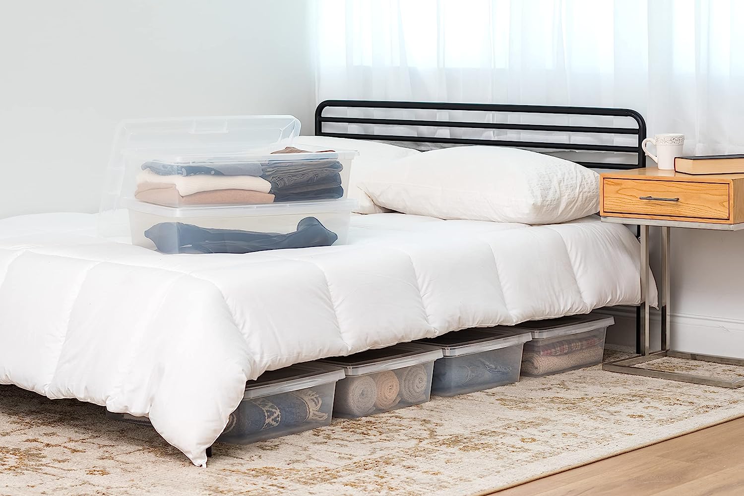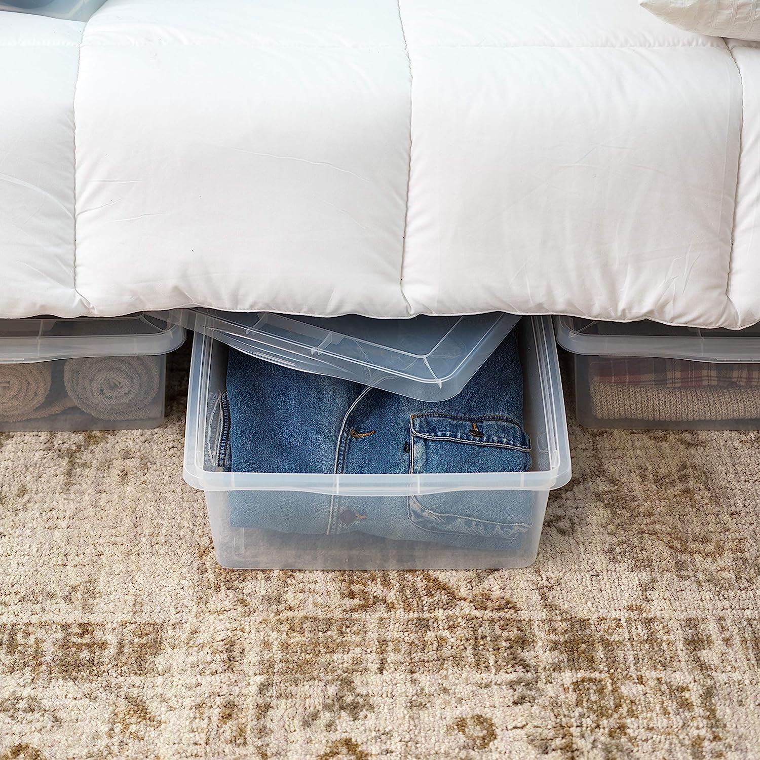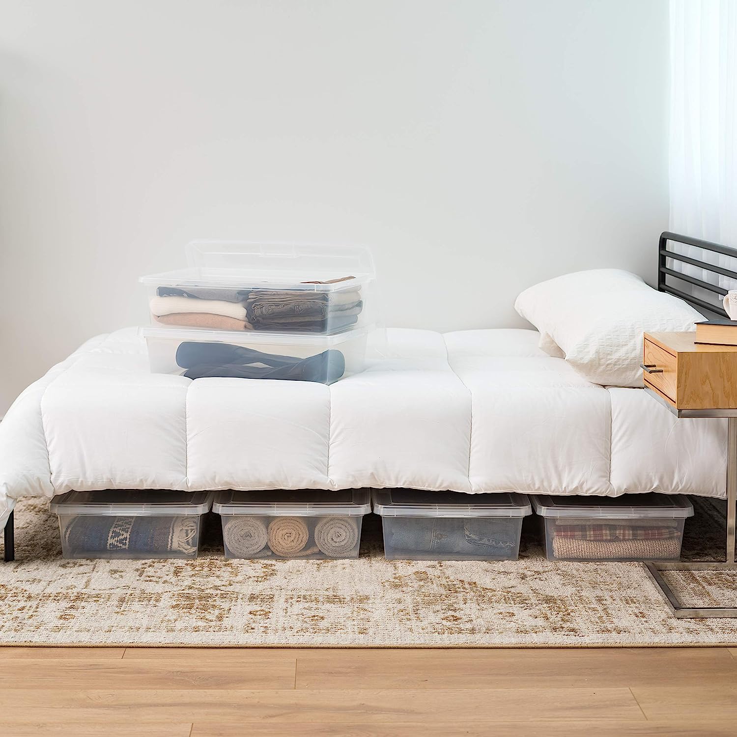 IRIS USA 28 Qt. Plastic Storage Container Bin with Latching Lid. Stackable Nestable Shoe Box Tote Shoebox Closet Organization School Art Supplies - Clear. 6 Pack